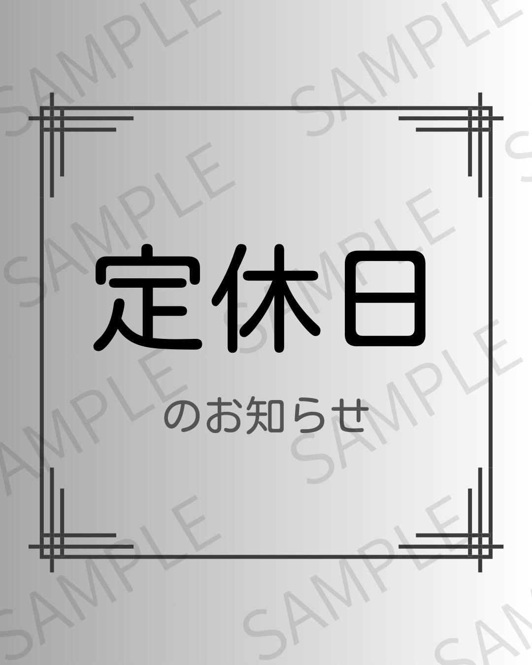 お店の定休日を簡単に告知できる、シンプルで見やすい「定休日のお知らせ」画像です。