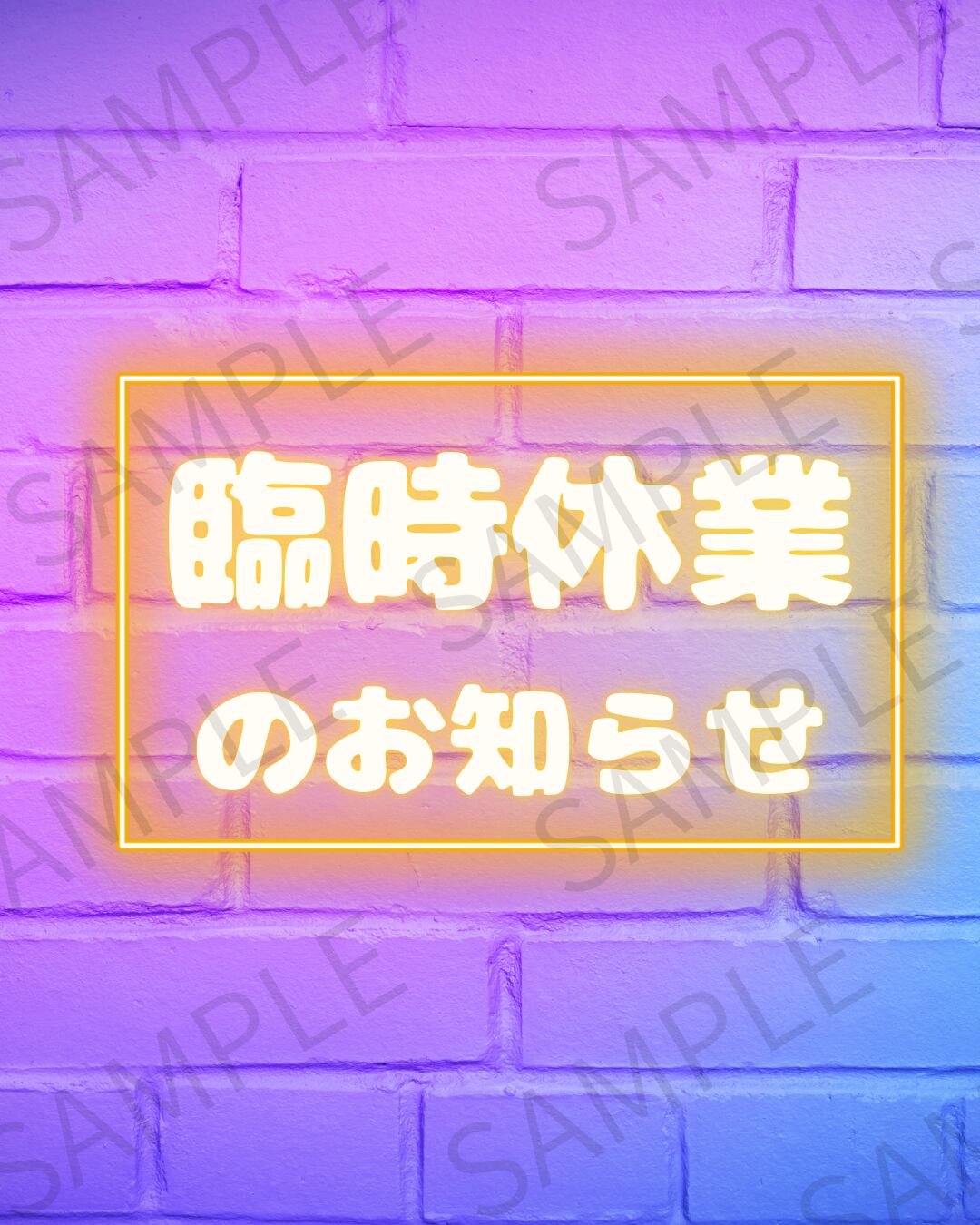 臨時休業のお知らせをSNSで発信する際に便利なデザイン画像です。