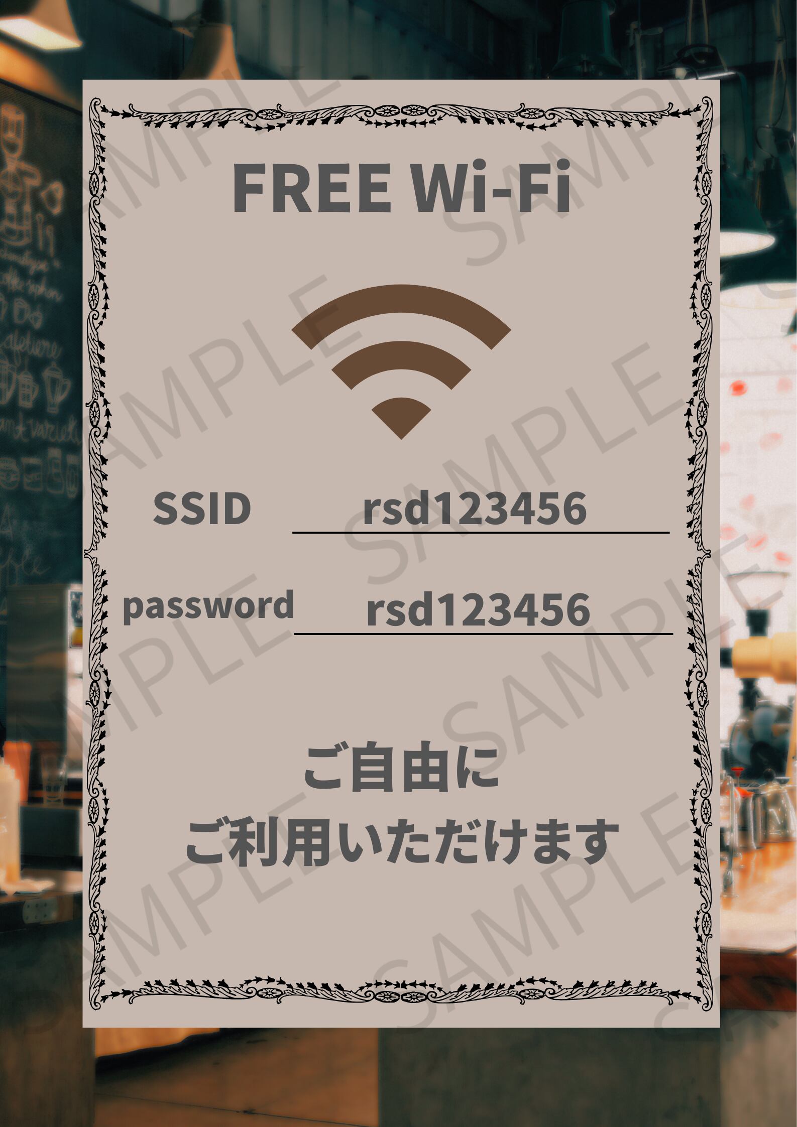 SSIDやパスワード部分は編集が可能なため、店舗ごとの情報に簡単に差し替えてご利用いただけます。