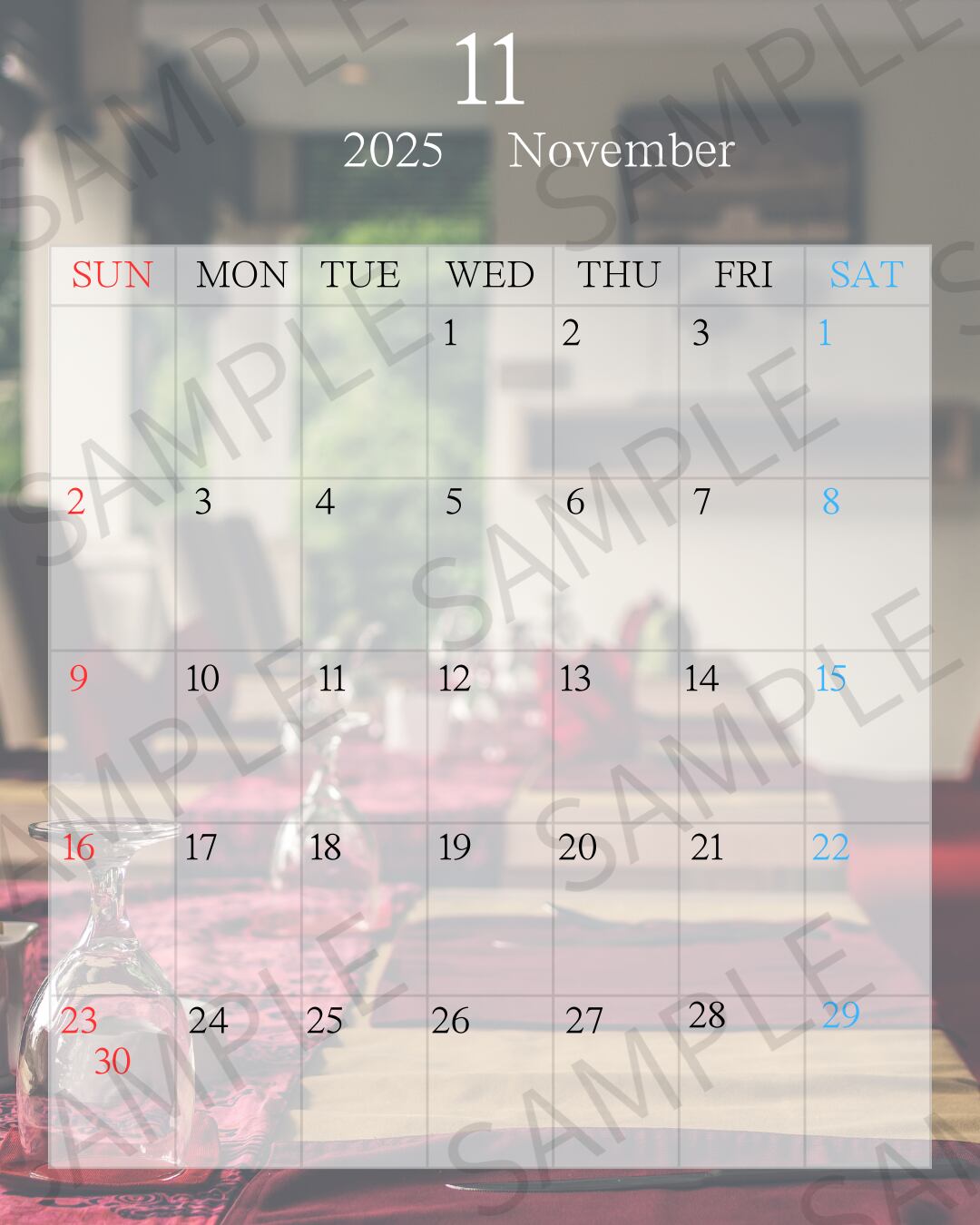 【Instagram投稿用】カレンダー画像(11月)