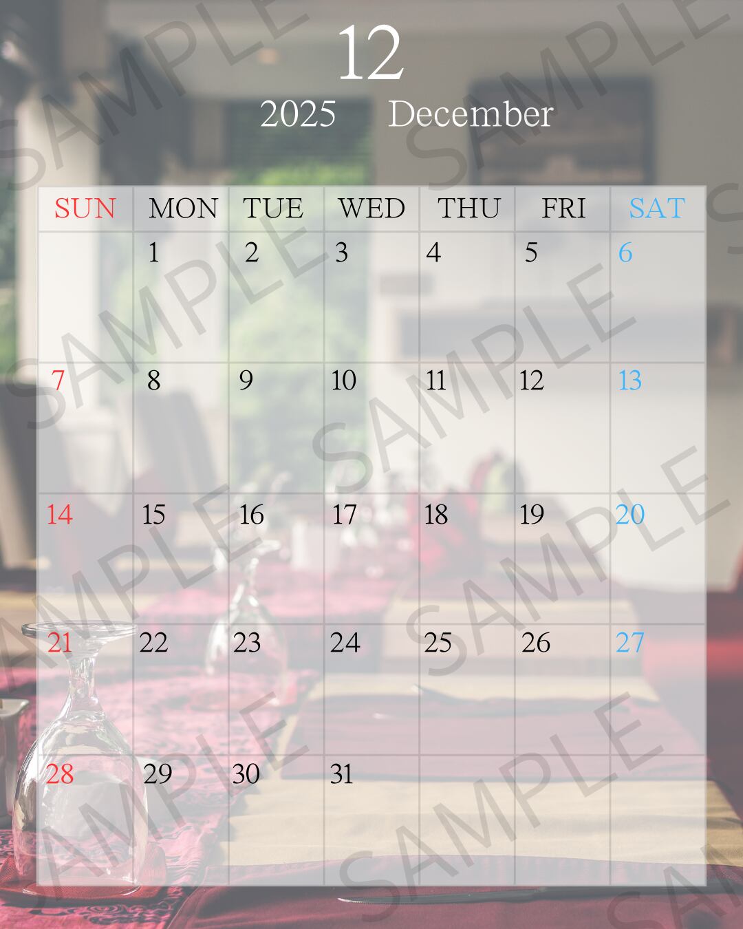 【Instagram投稿用】カレンダー画像(12月)