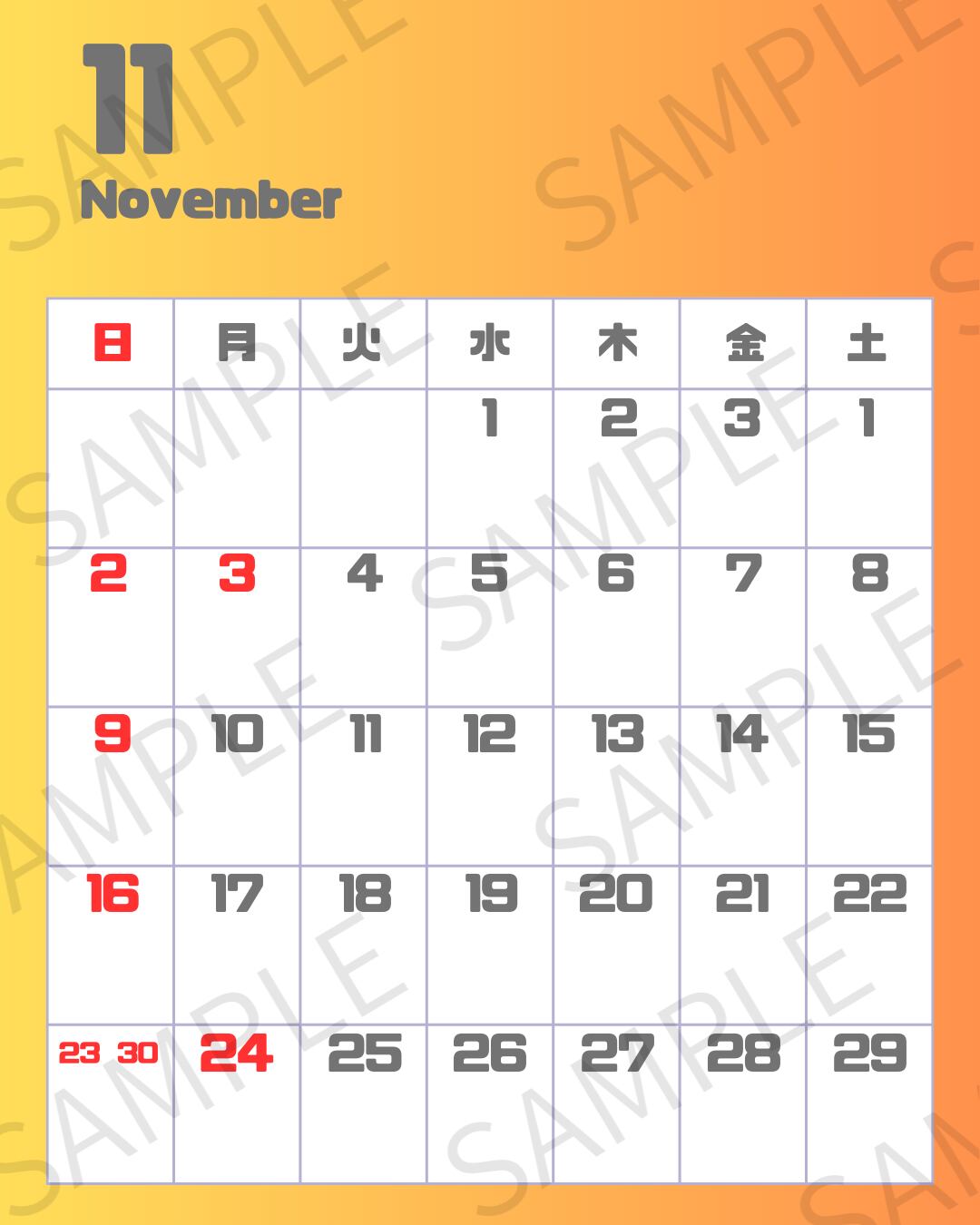 ・SNSや店内POPにそのまま使えるカレンダーデザイン