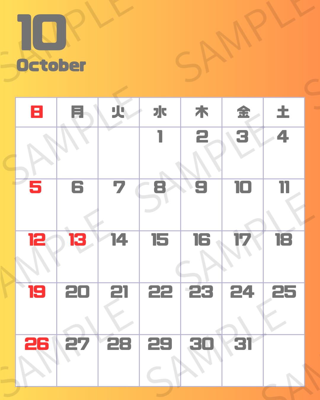 【Instagram投稿用】カレンダー画像(10〜12月セット)