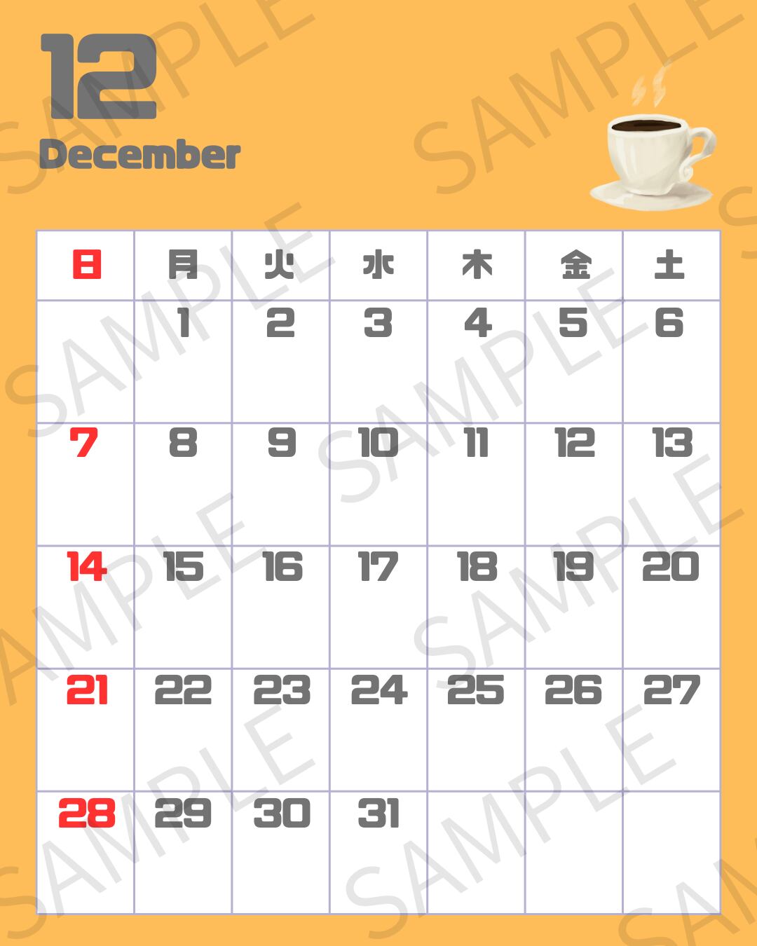 飲食店の販促や情報発信に便利なカレンダーデザインです。