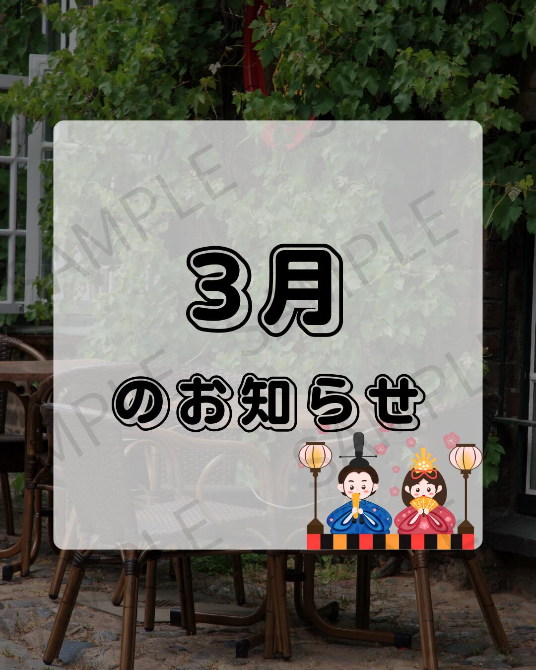 【Instagram投稿用】カフェが背景のお知らせ画像(3月)