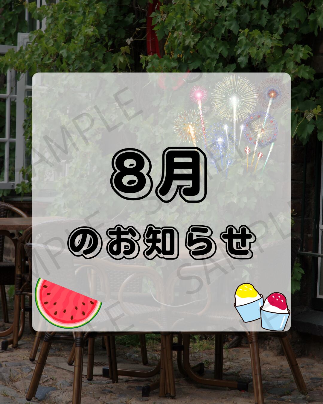 【Instagram投稿用】カフェが背景のお知らせ画像(8月)