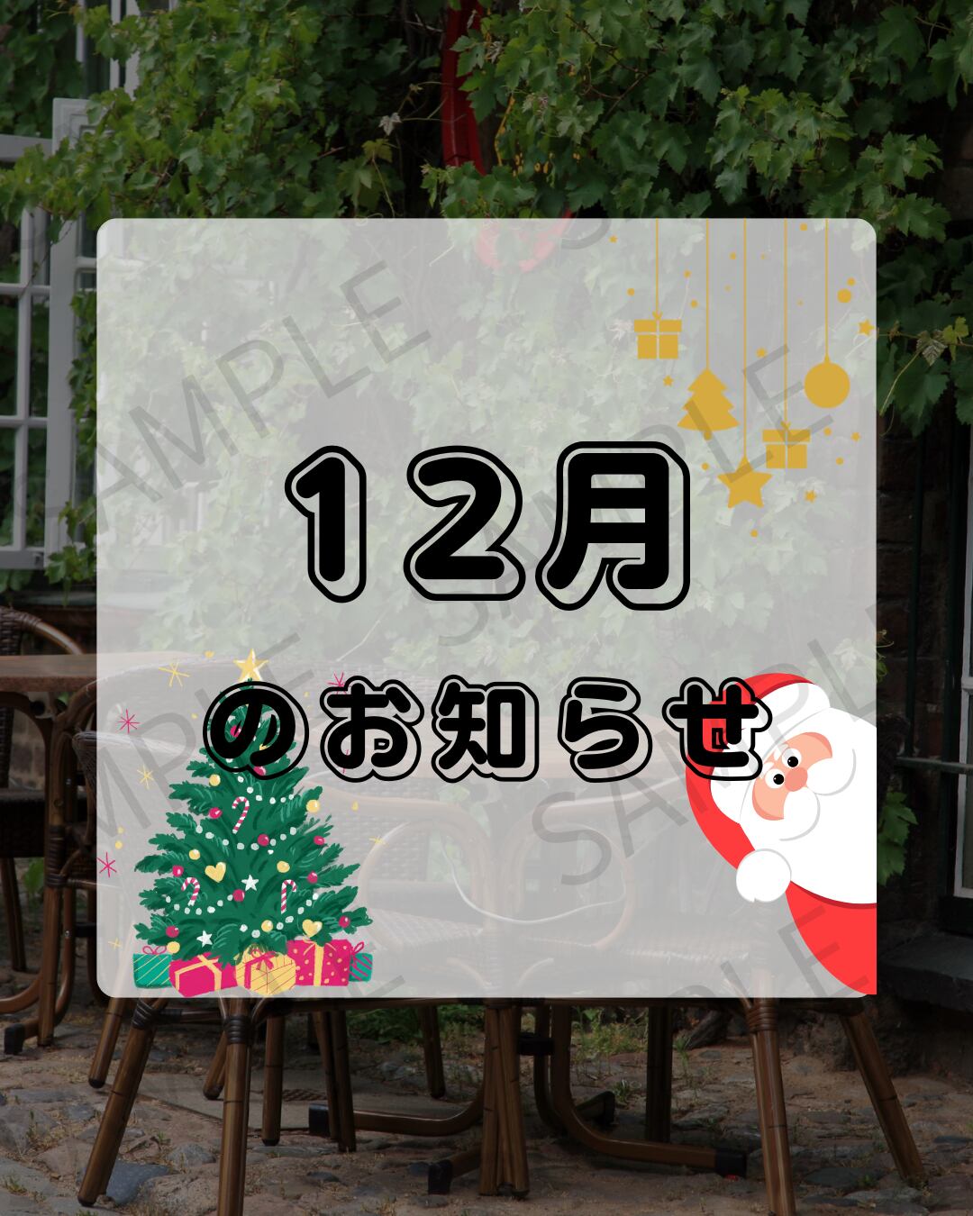 【Instagram投稿用】カフェが背景のお知らせ画像(12月)