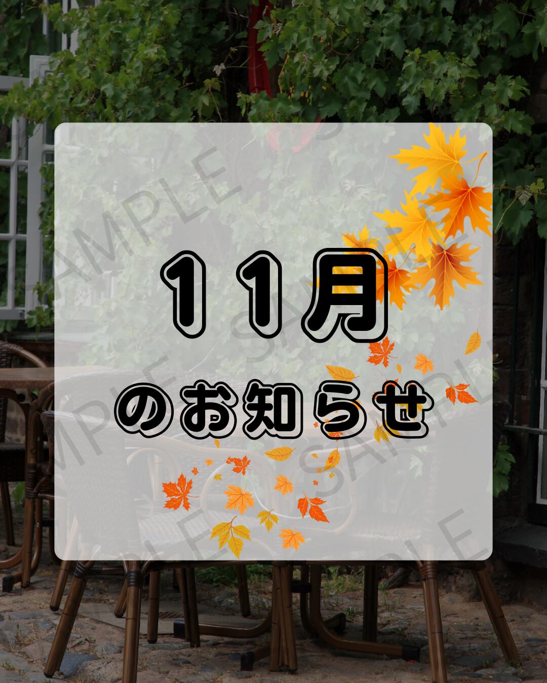 InstagramやFacebookなどSNSでの投稿や、店頭でのお知らせ用としてご活用いただけます。