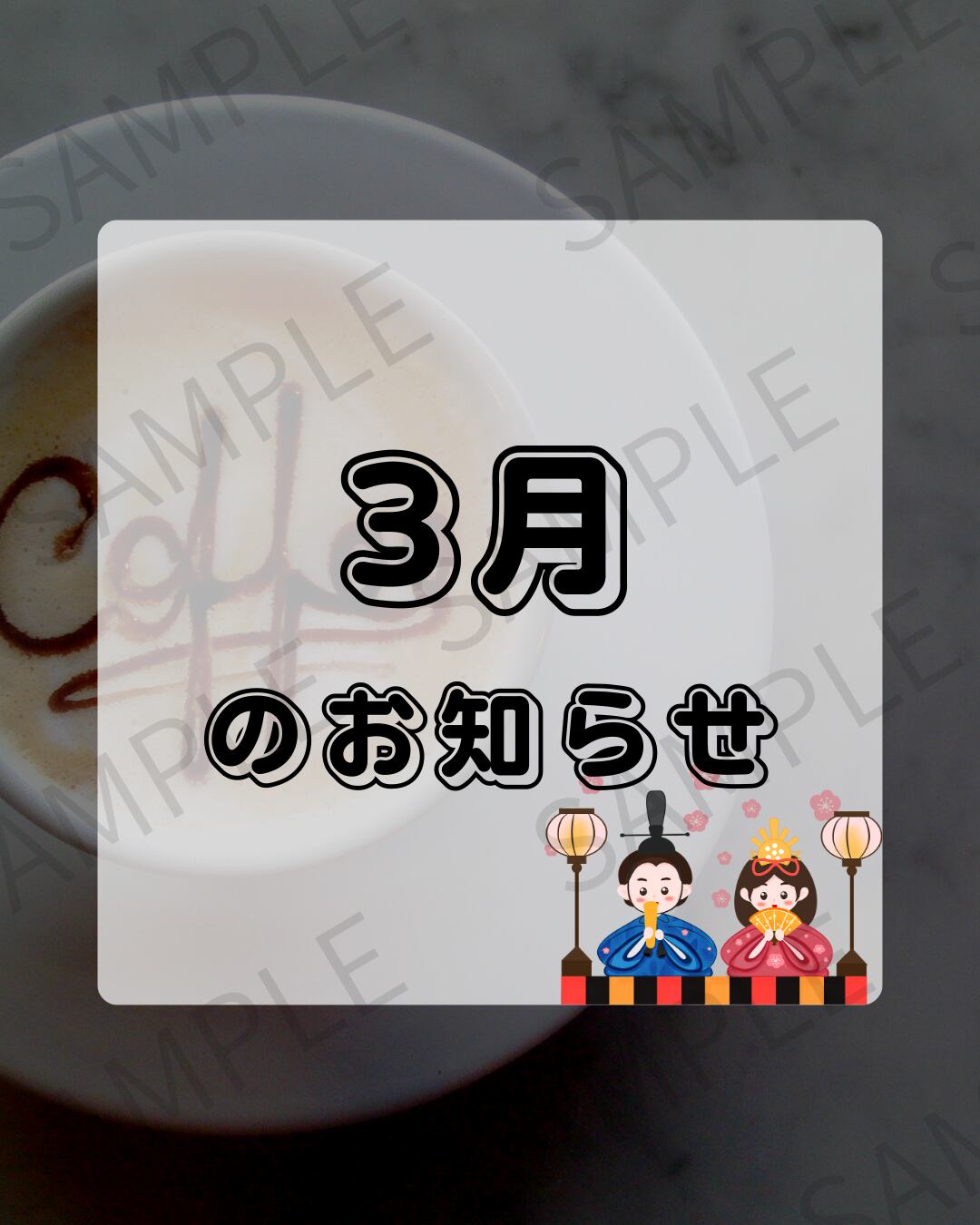 【Instagram投稿用】コーヒーカップが背景のお知らせ画像(3月)