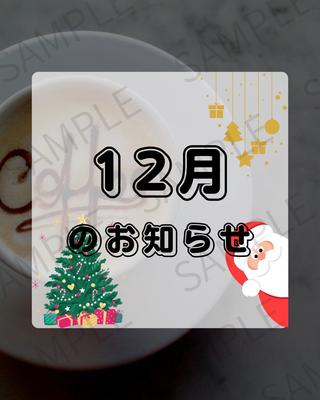 【Instagram投稿用】コーヒーカップが背景のお知らせ画像(12月)