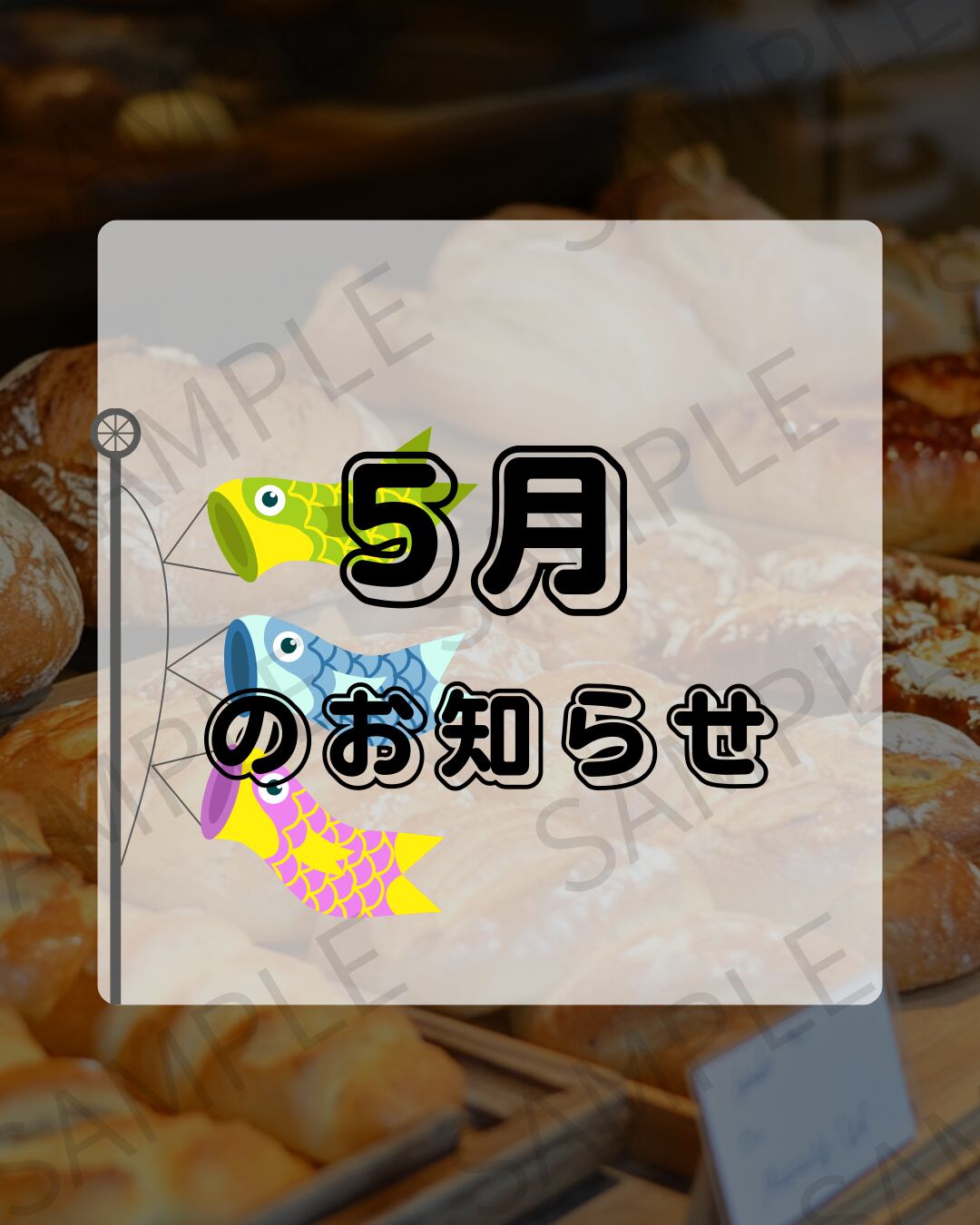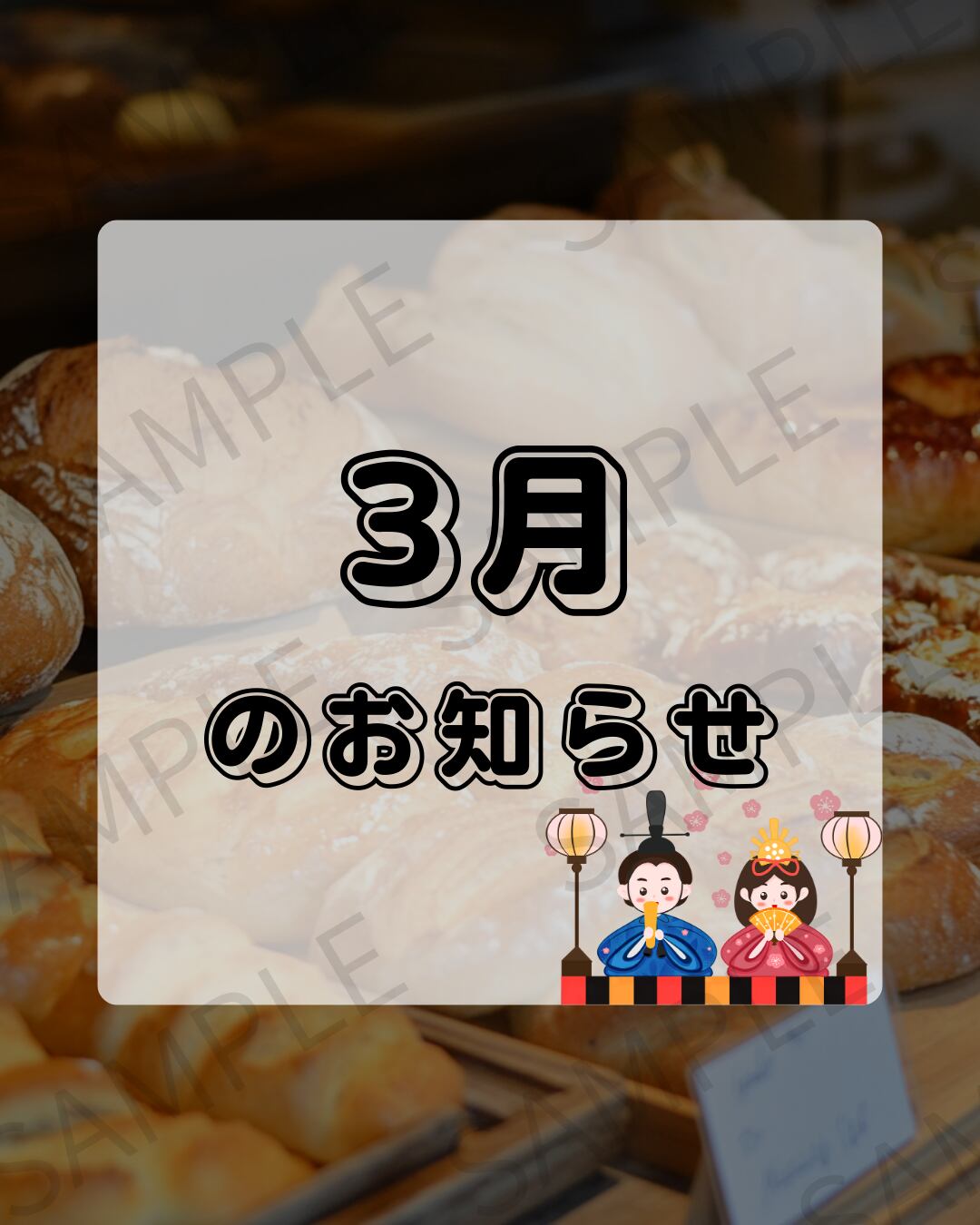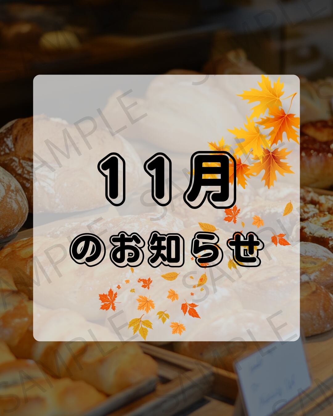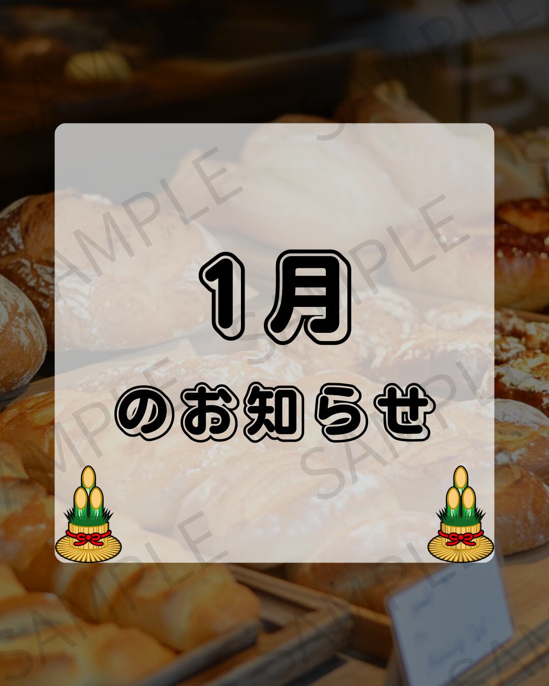 【Instagram投稿用】パン屋が背景のお知らせ画像(1〜12月セット)