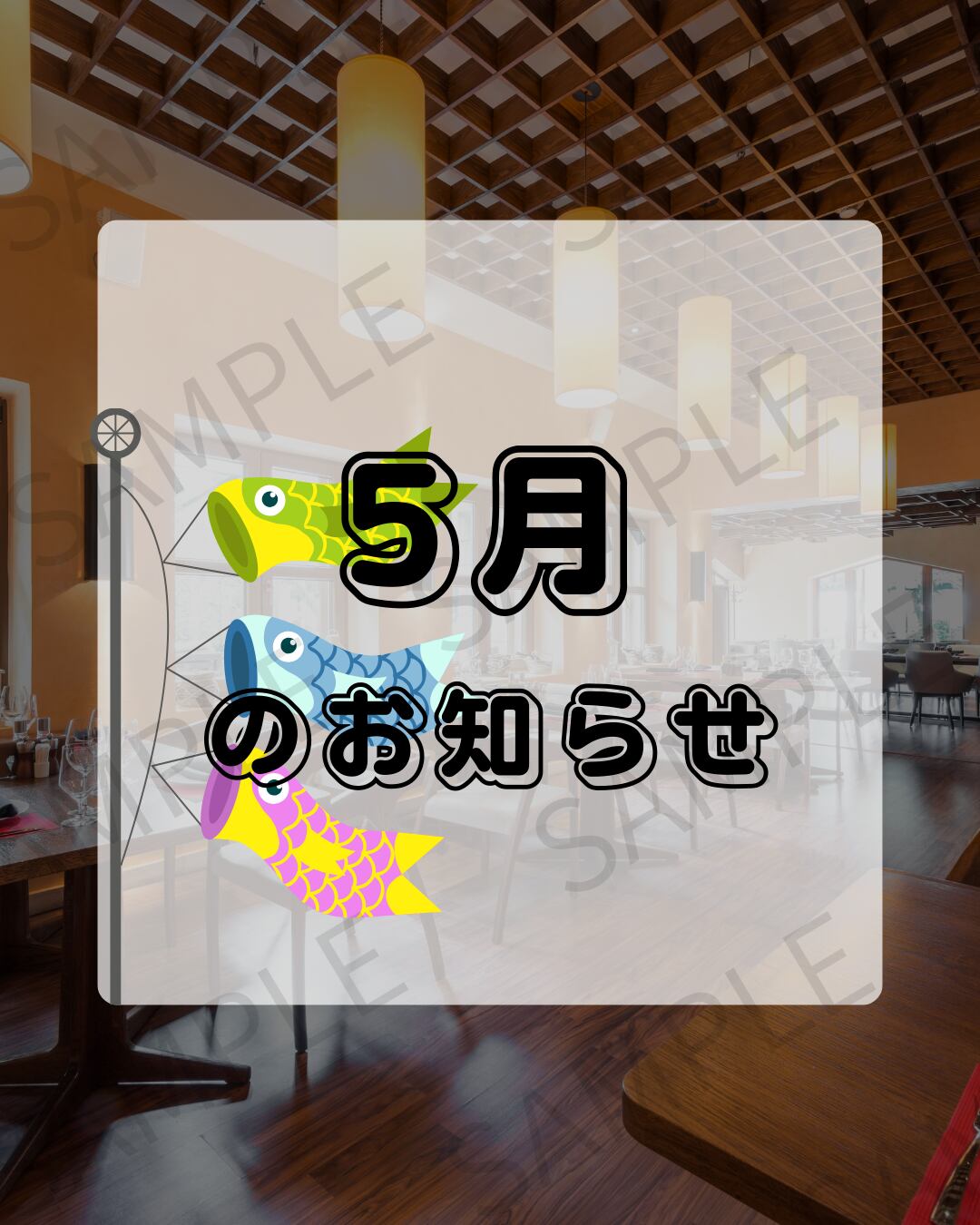 【Instagram投稿用】レストランが背景のお知らせ画像(5月)