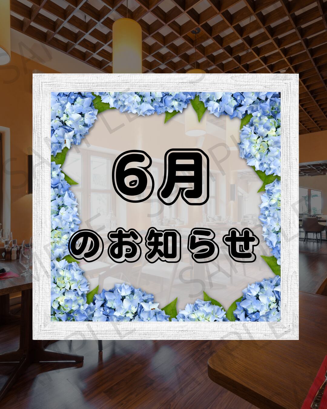 【Instagram投稿用】レストランが背景のお知らせ画像(6月)