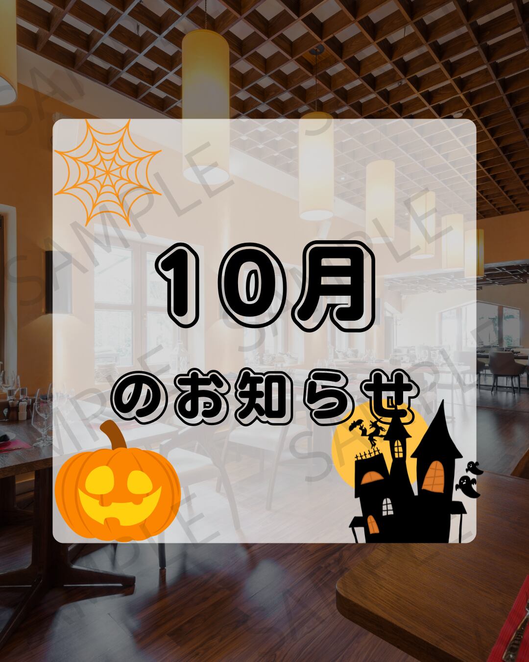 【Instagram投稿用】レストランが背景のお知らせ画像(10月)