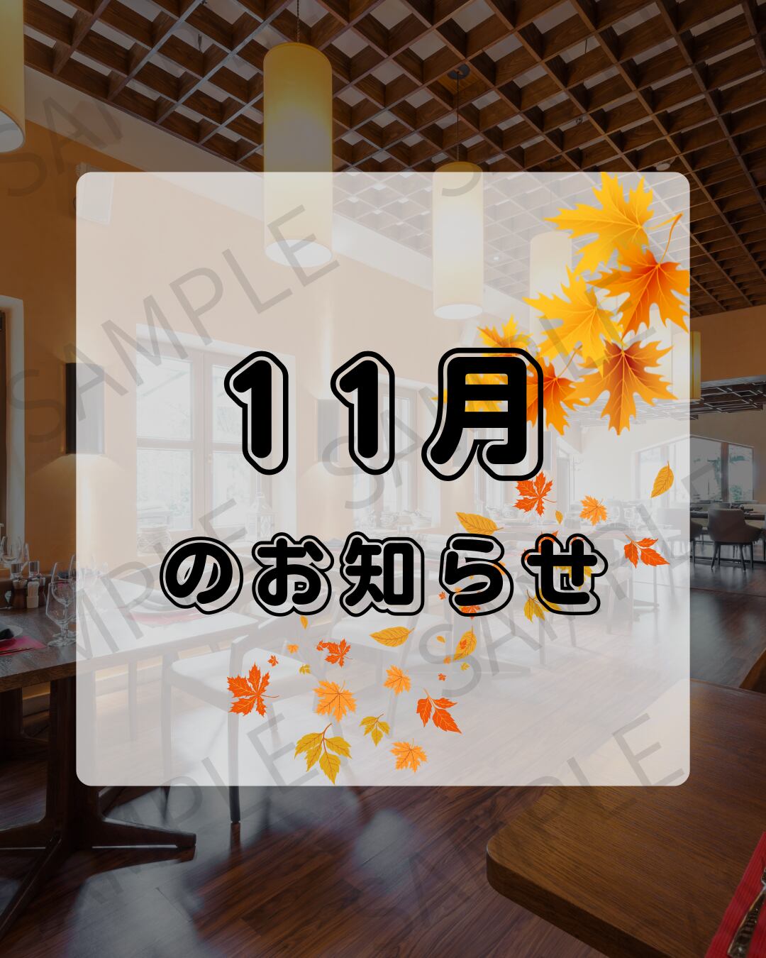 【Instagram投稿用】レストランが背景のお知らせ画像(11月)