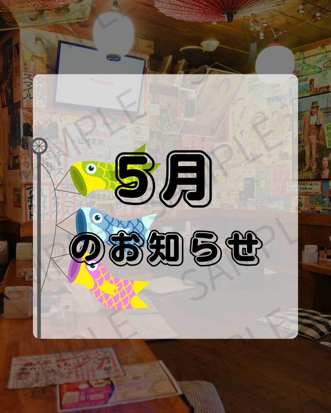 【Instagram投稿用】居酒屋が背景のお知らせ画像(5月)