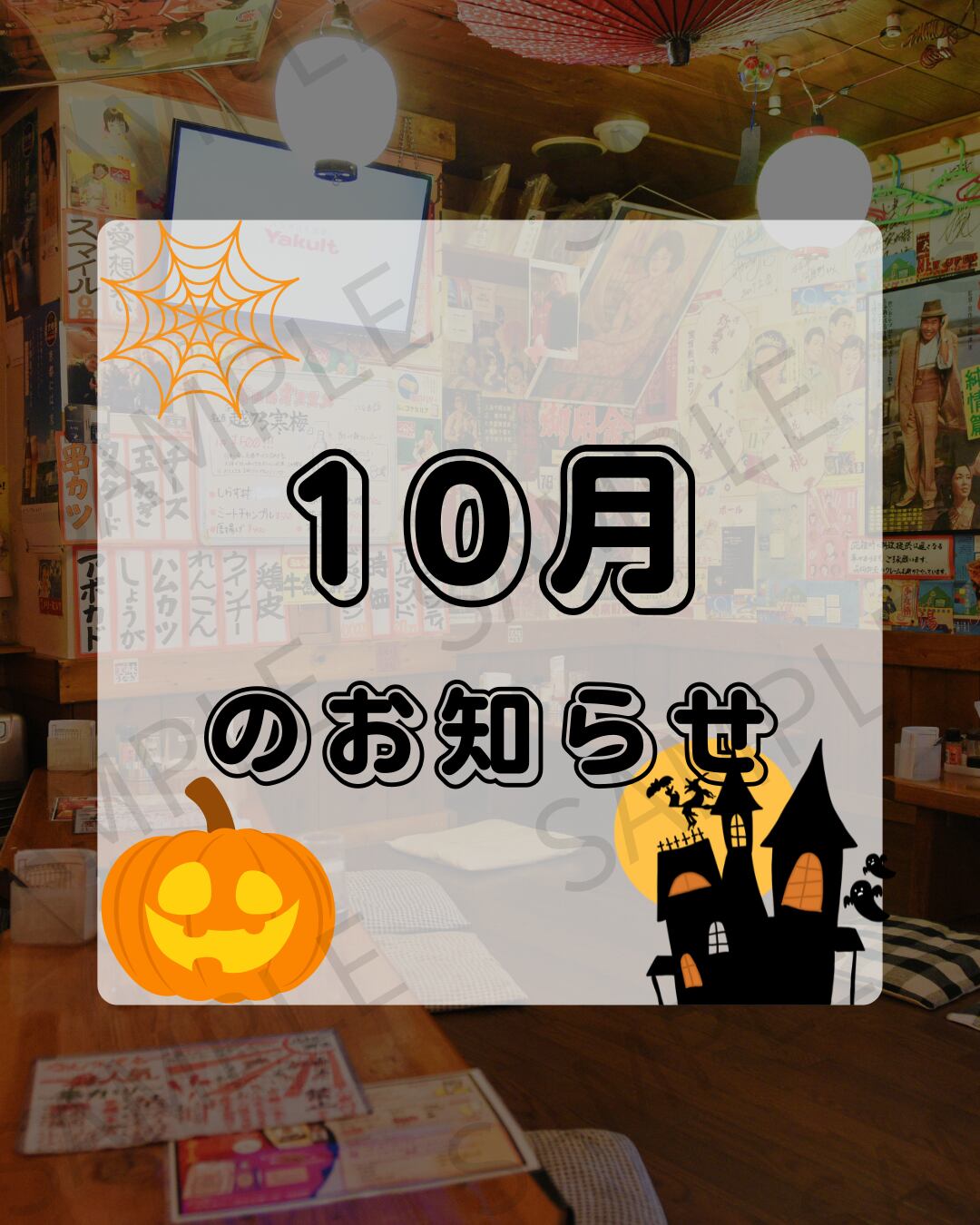 【Instagram投稿用】居酒屋が背景のお知らせ画像(10月)