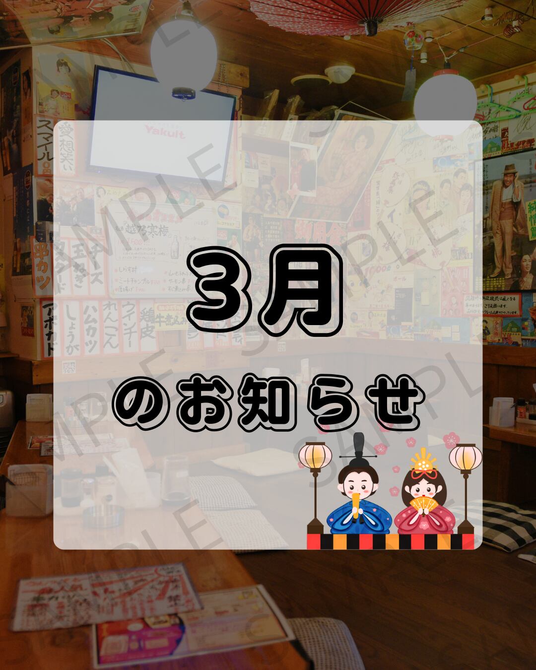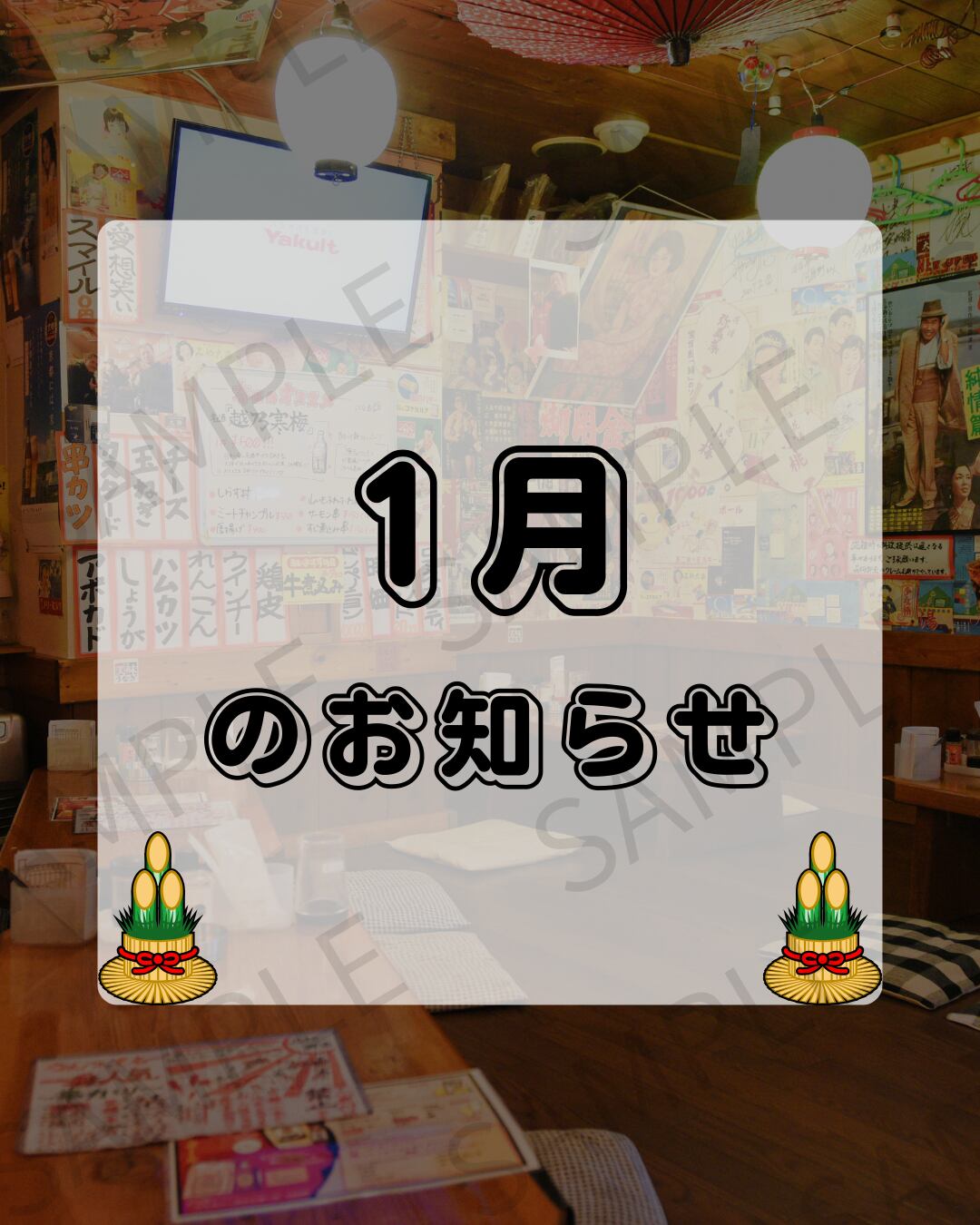 【Instagram投稿用】居酒屋が背景のお知らせ画像(1〜12月セット)
