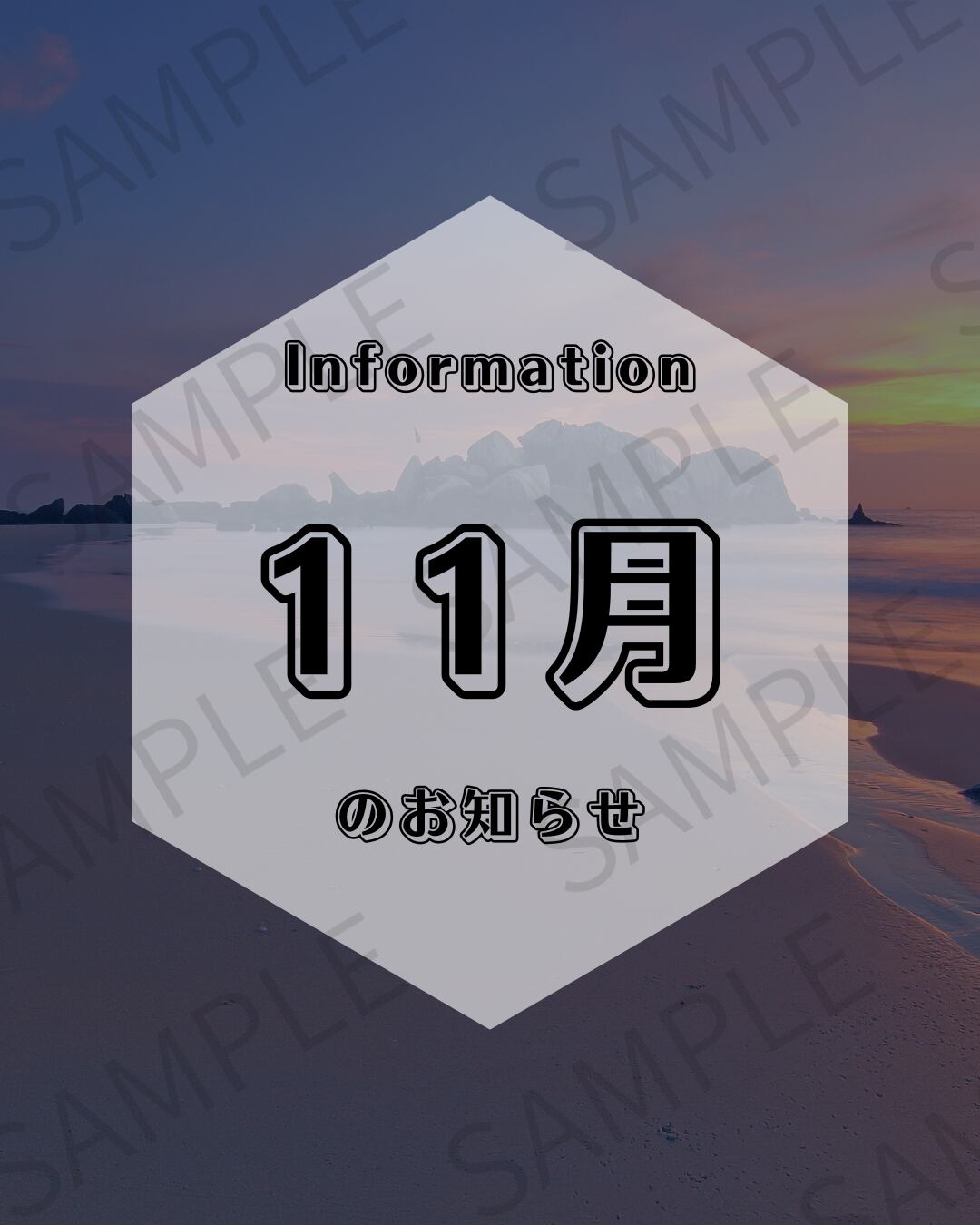 【Instagram投稿用】海が背景のお知らせ画像(1〜12月セット)