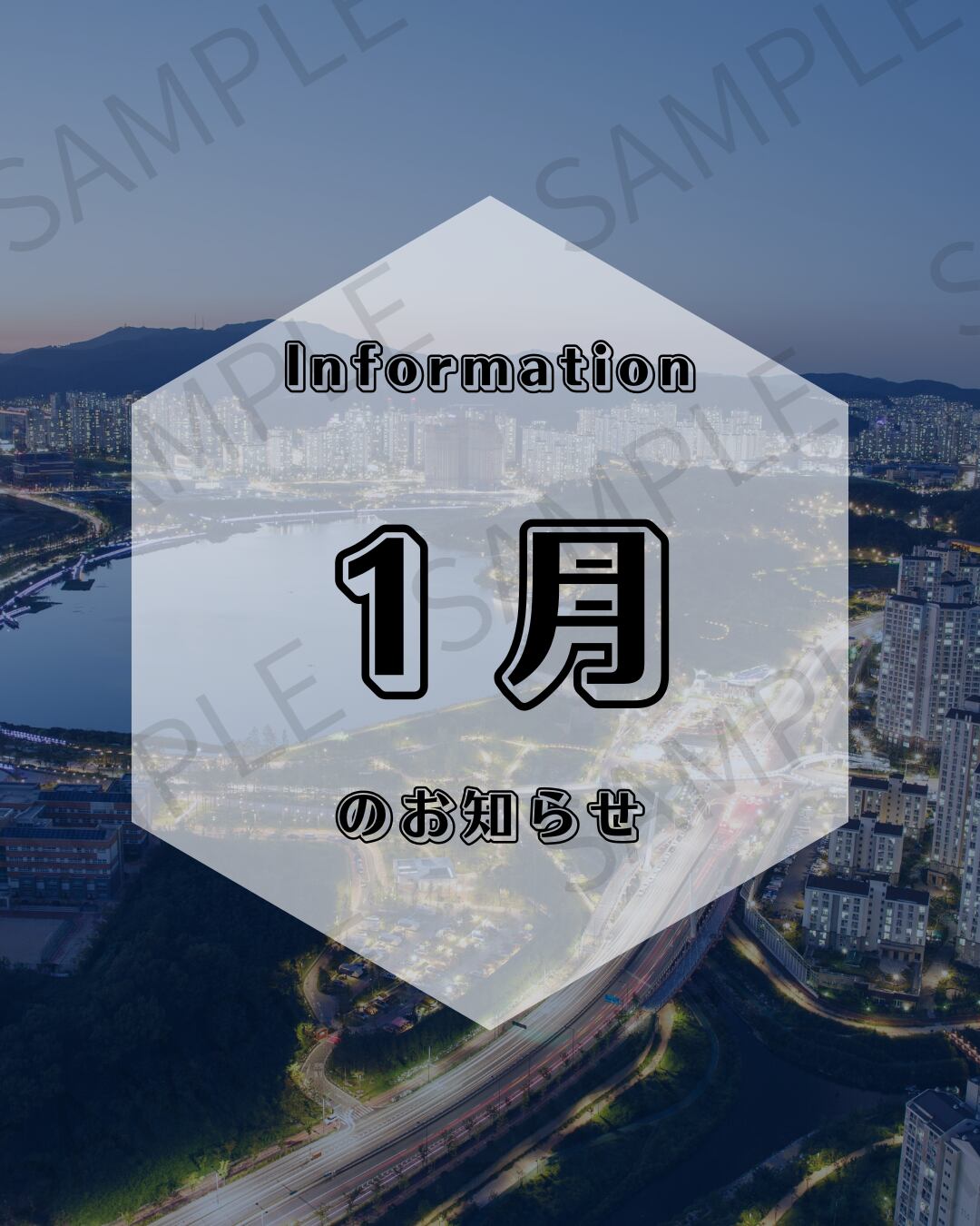 【Instagram投稿用】街並みが背景のお知らせ画像(1月)