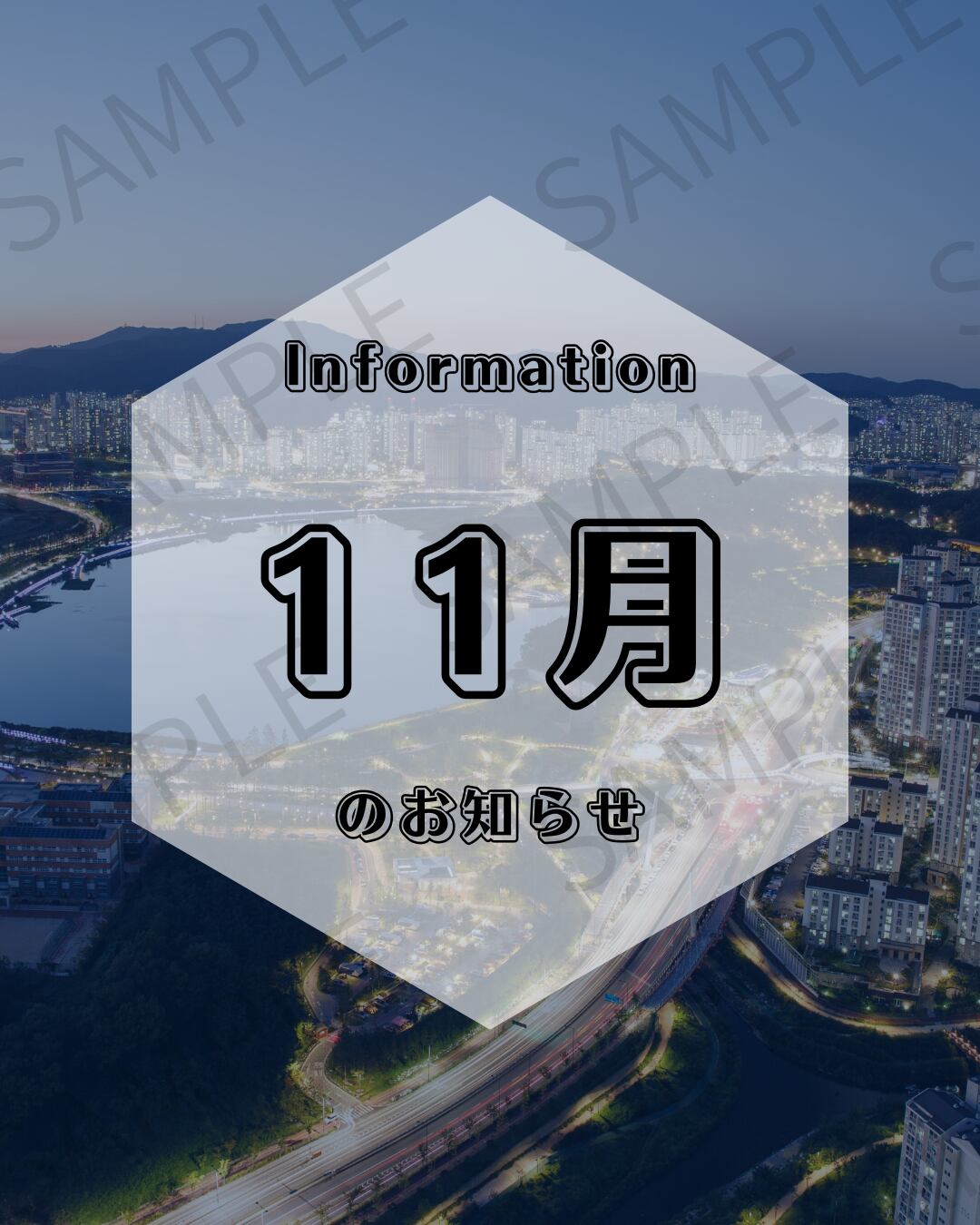 【Instagram投稿用】街並みが背景のお知らせ画像(1〜12月セット)