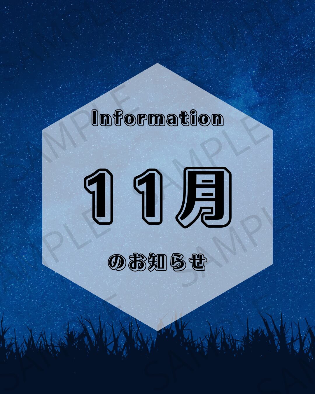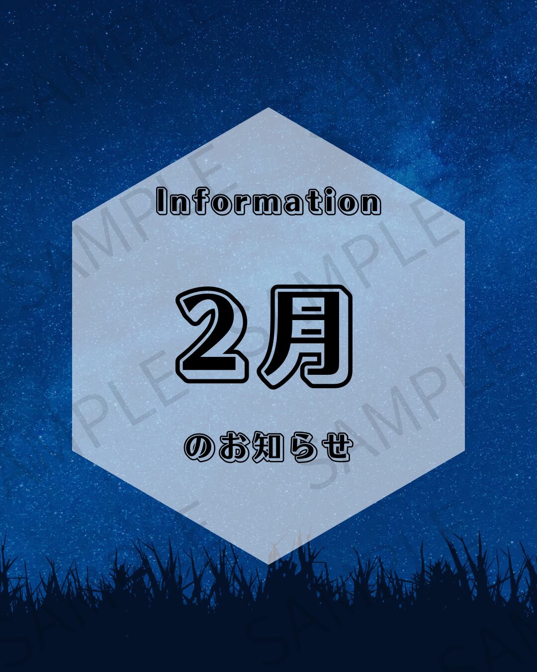 【Instagram投稿用】夜空が背景のお知らせ画像(1〜12月セット)