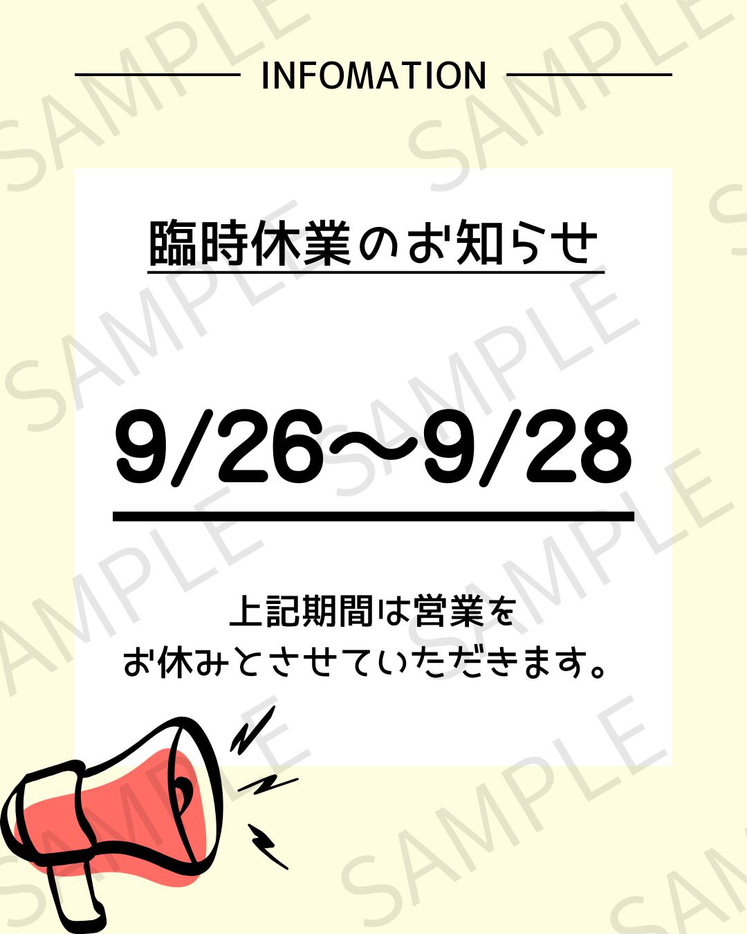 臨時休業のお知らせをSNSで発信する際に便利なデザイン画像です。