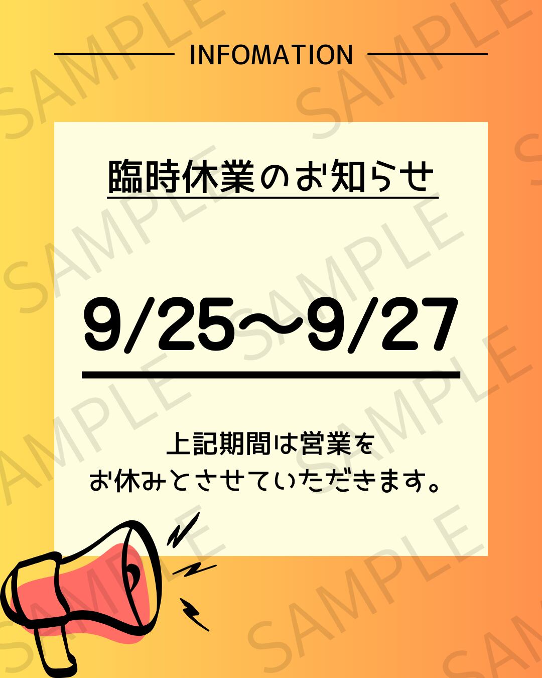 【Instagram投稿用】日付入りの臨時休業のお知らせ画像(グラデーション)
