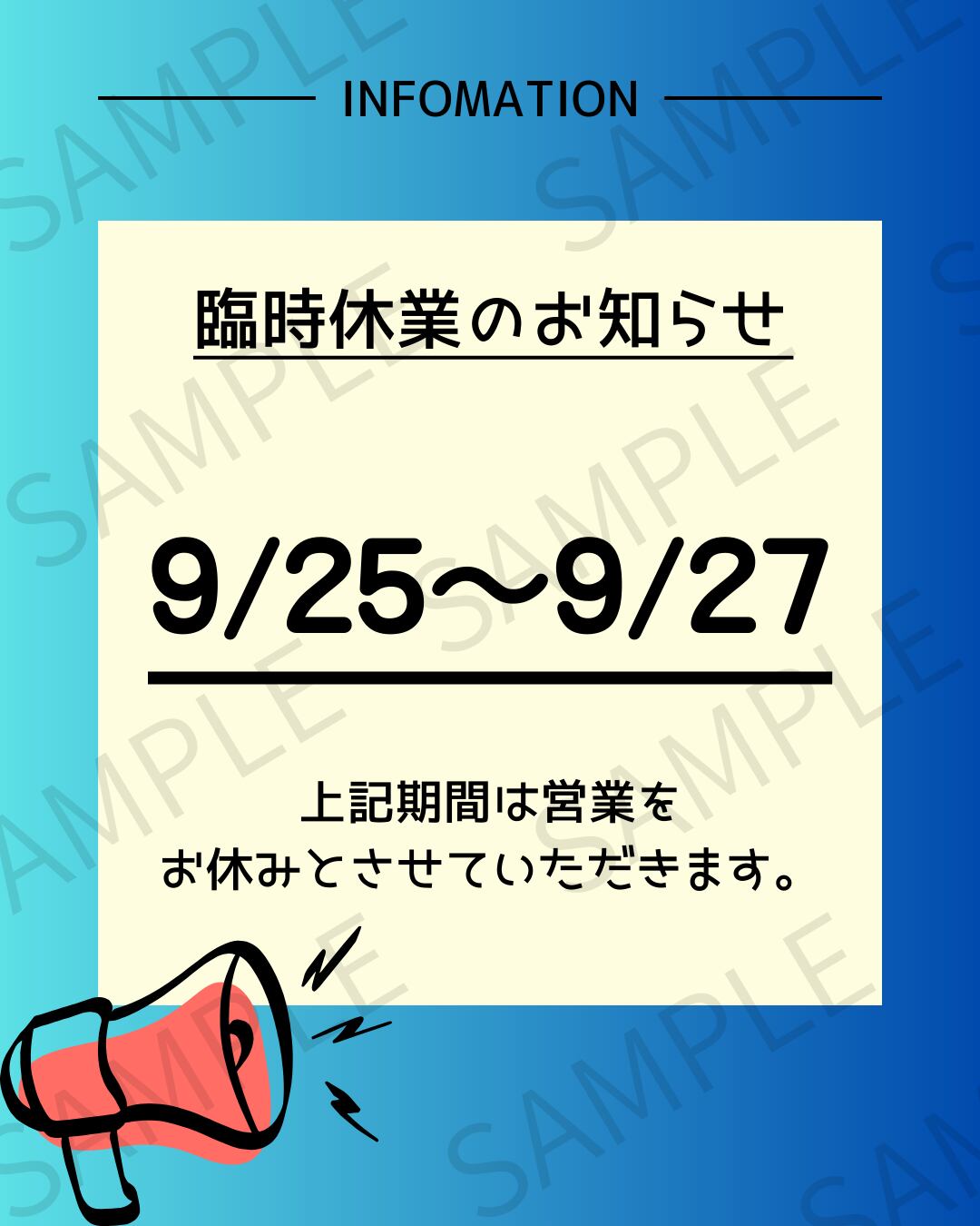 【Instagram投稿用】日付入りの臨時休業のお知らせ画像(グラデーション)