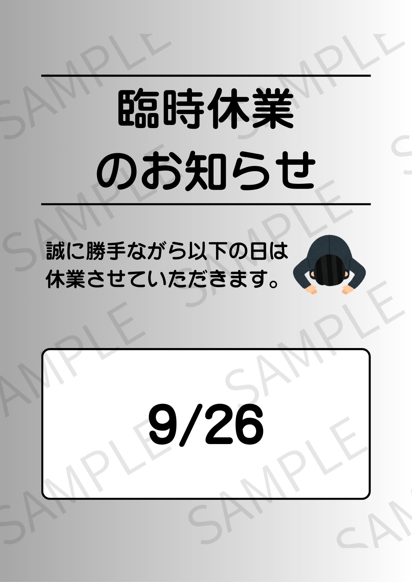 【A4ポスター用】日付入りの臨時休業のお知らせ画像(グラデーション)