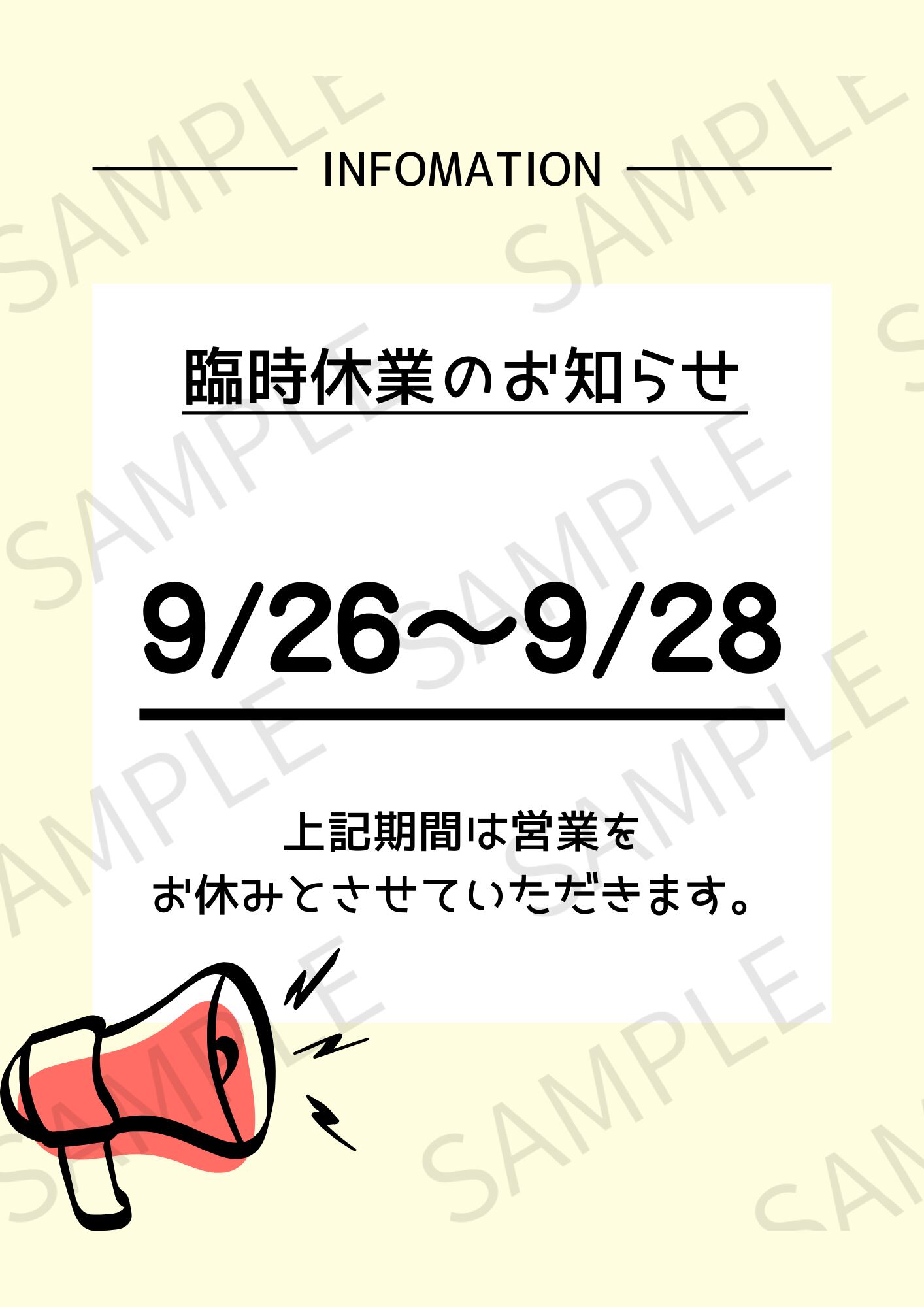 【A4ポスター用】日付入りの臨時休業のお知らせ画像(クリーム)
