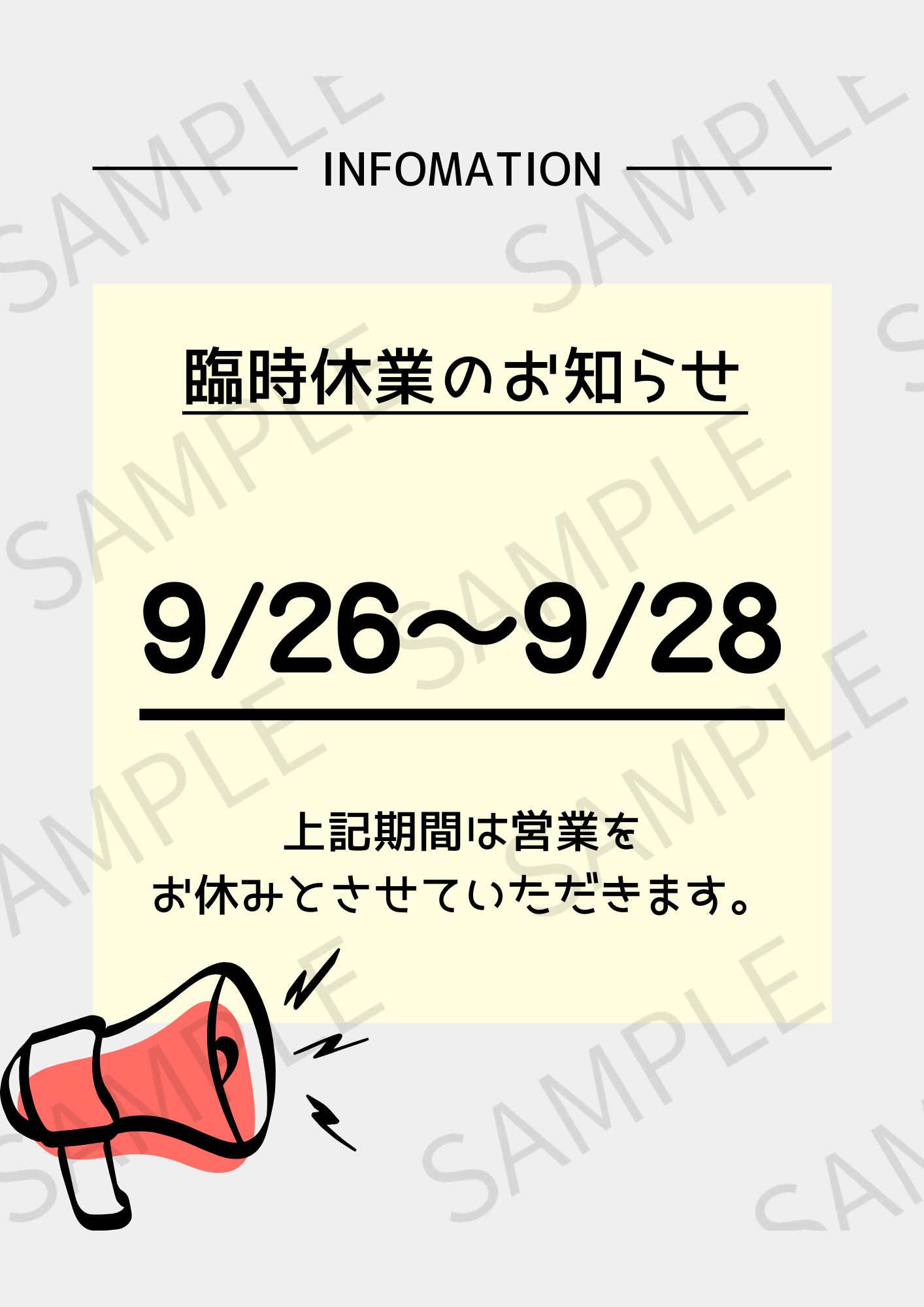 臨時休業のお知らせする際に便利なデザイン画像です。