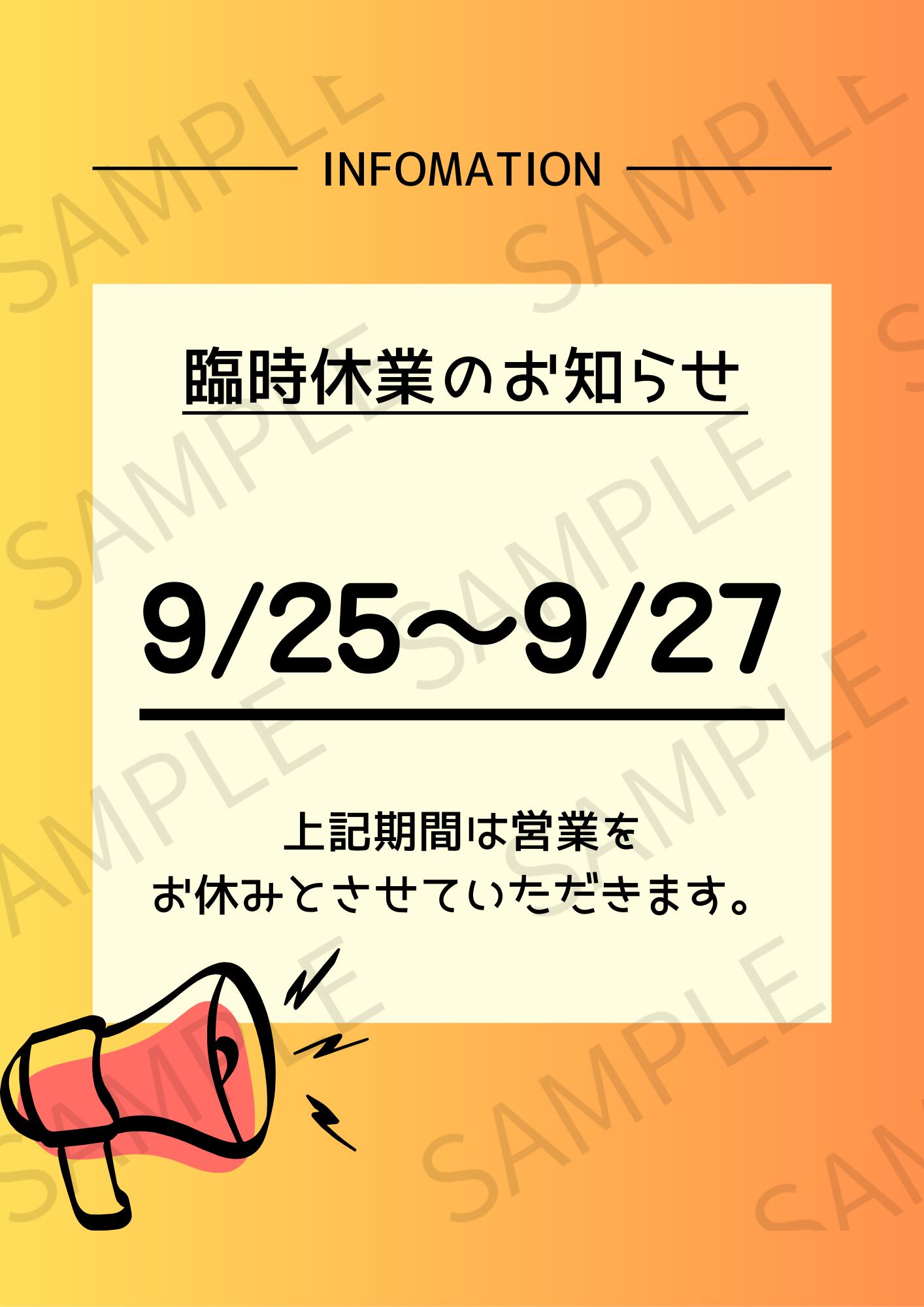 【A4ポスター用】日付入りの臨時休業のお知らせ画像(グラデーション)