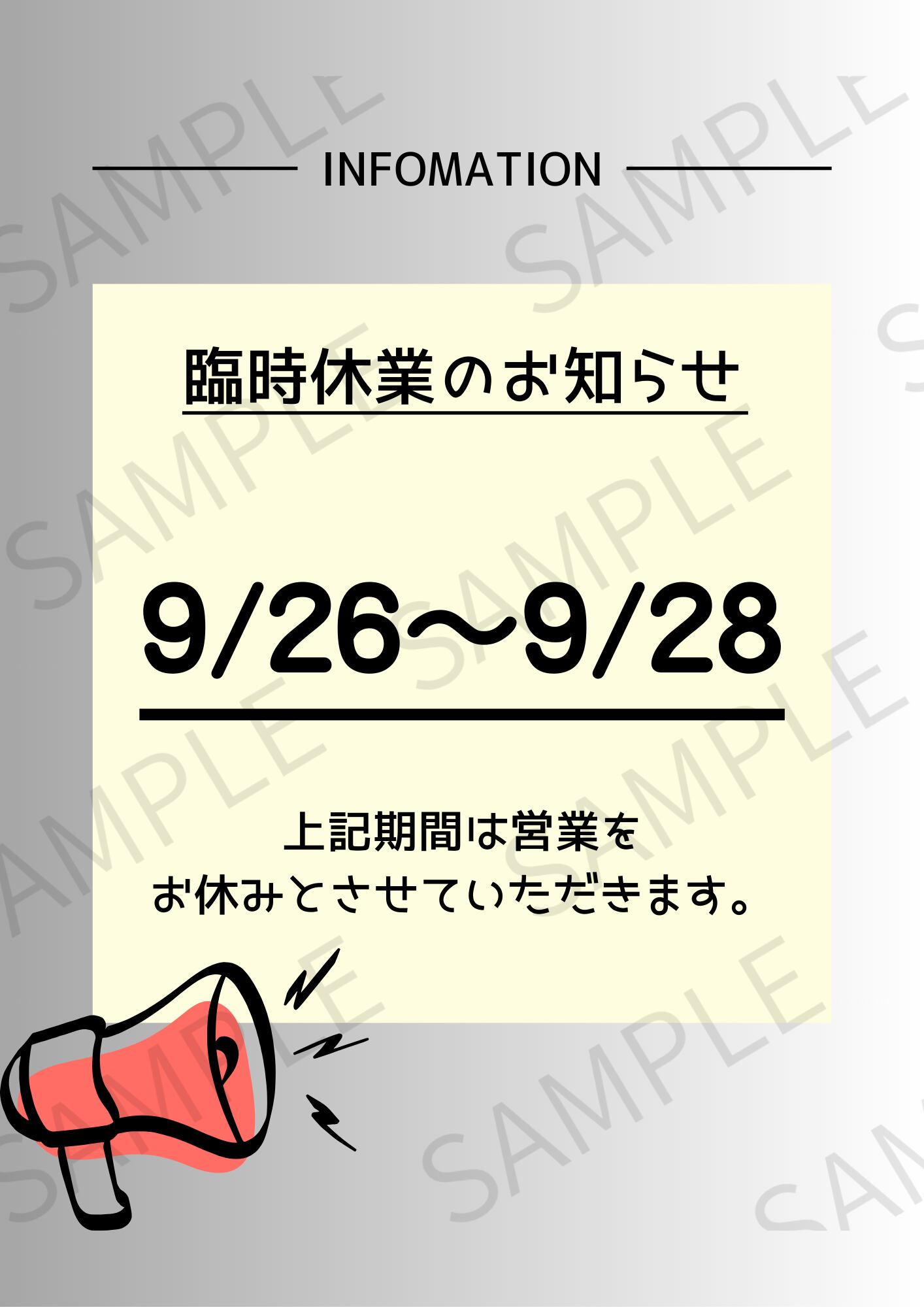 【A4ポスター用】日付入りの臨時休業のお知らせ画像(グラデーション)