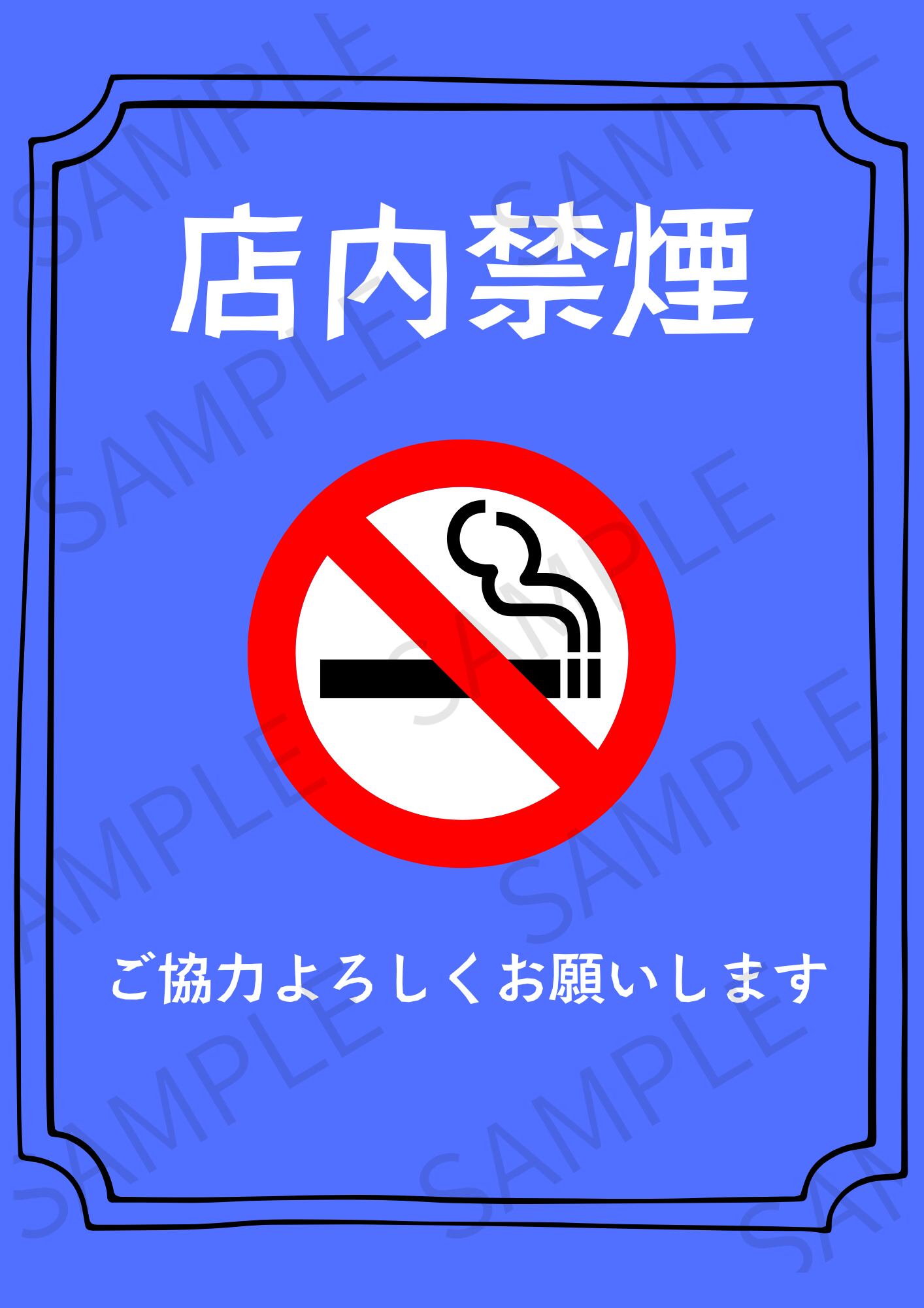 【A4ポスター用】店内禁煙ポスター 画像 デザイン1(ブルー)