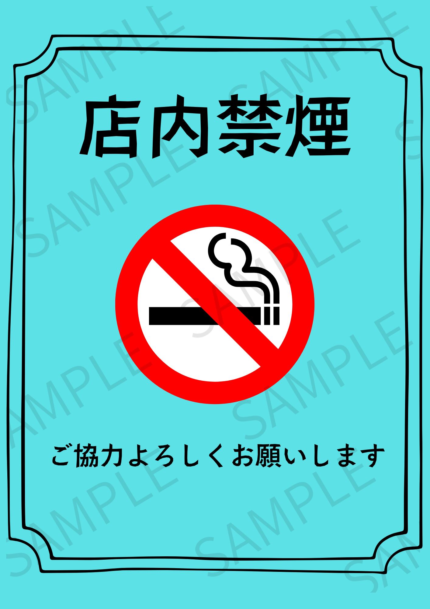 【A4ポスター用】店内禁煙ポスター 画像 デザイン1(ライトブルー)