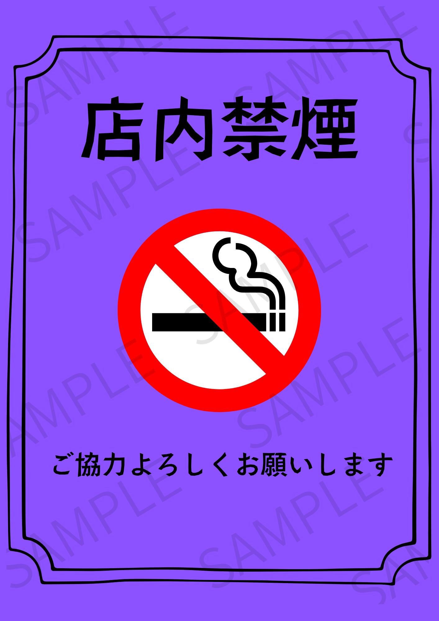 【A4ポスター用】店内禁煙ポスター 画像 デザイン1(パープル)