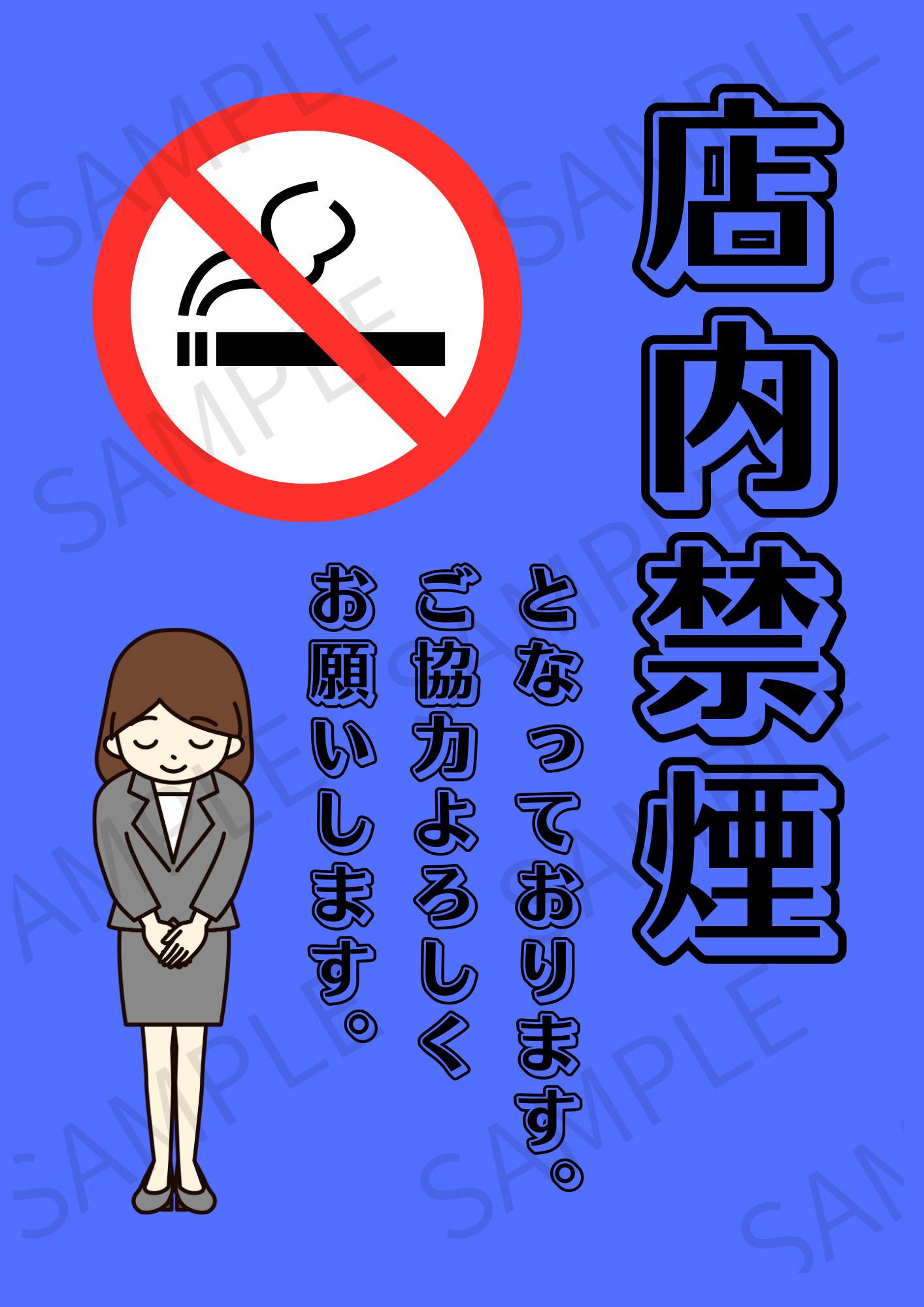 【A4ポスター用】店内禁煙ポスター 画像 デザイン2(ブルー)