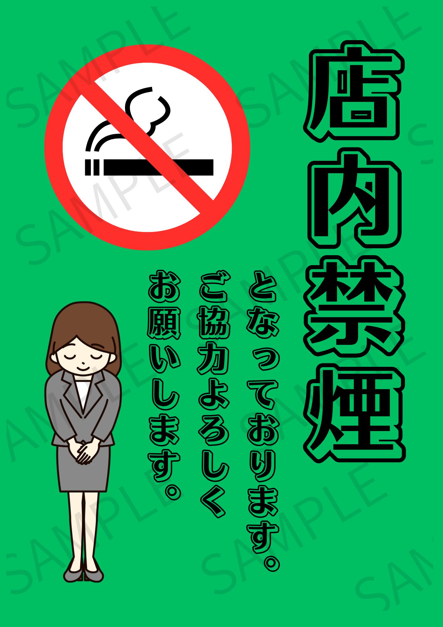【A4ポスター用】店内禁煙ポスター 画像 デザイン2(グリーン)