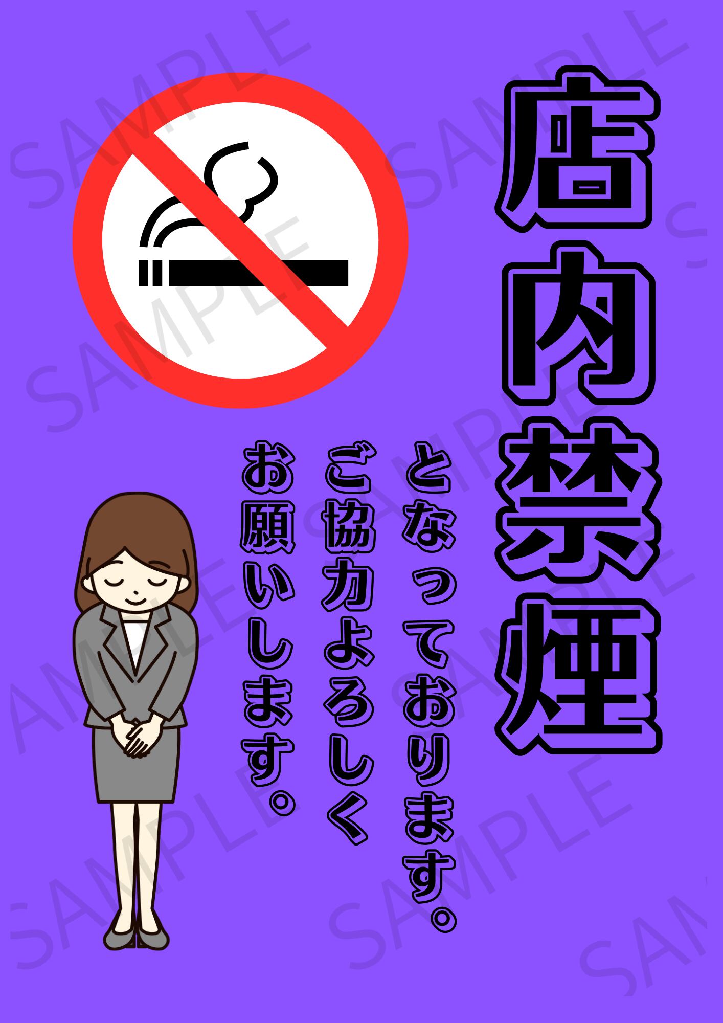 【A4ポスター用】店内禁煙ポスター 画像 デザイン2(パープル)