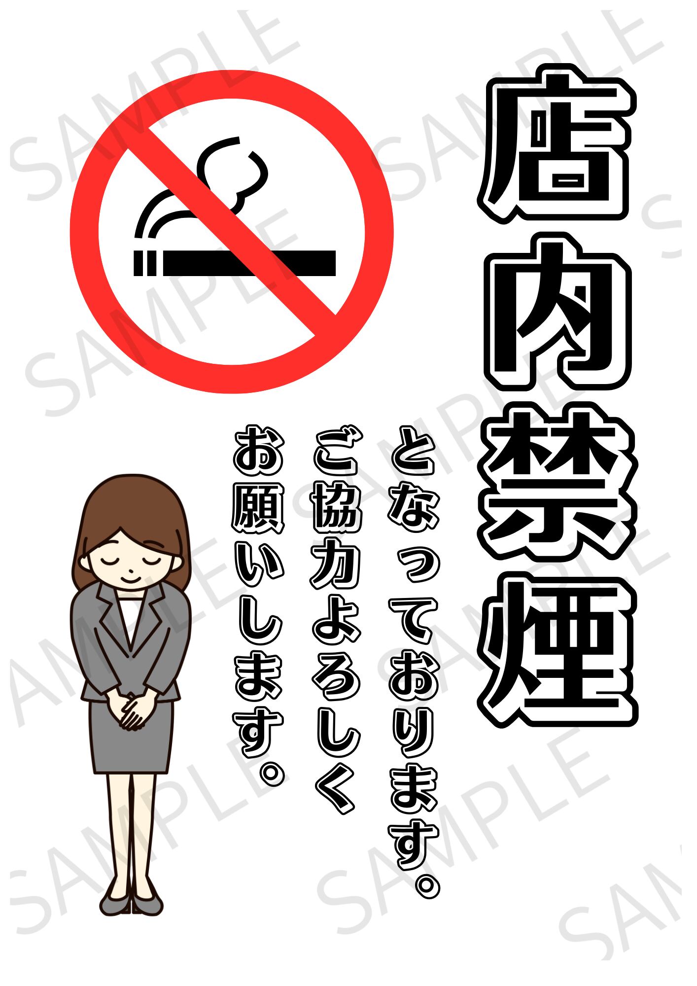 【A4ポスター用】店内禁煙ポスター 画像 デザイン2(ホワイト)