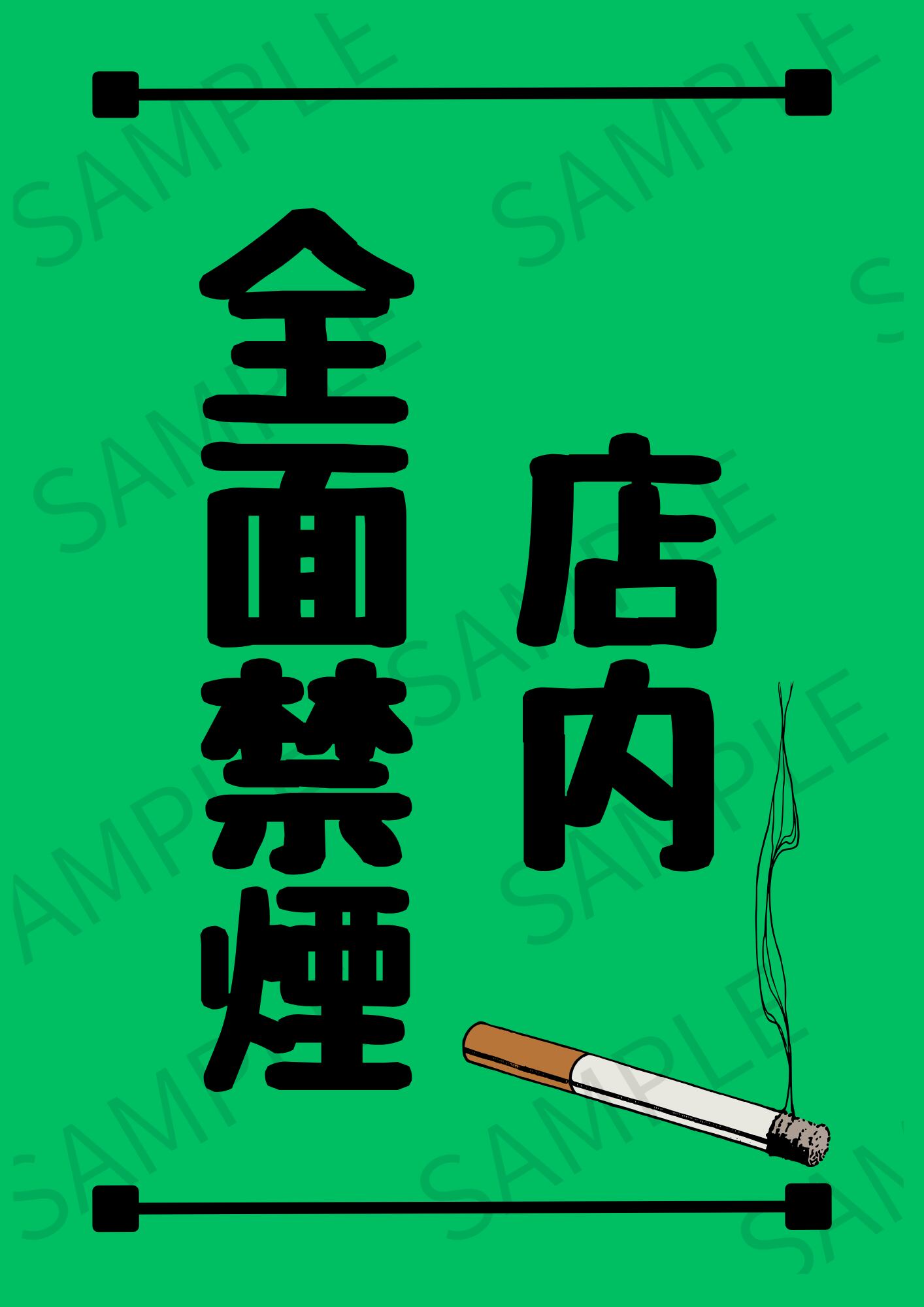 【A4ポスター用】店内禁煙ポスター 画像 デザイン3(グリーン)