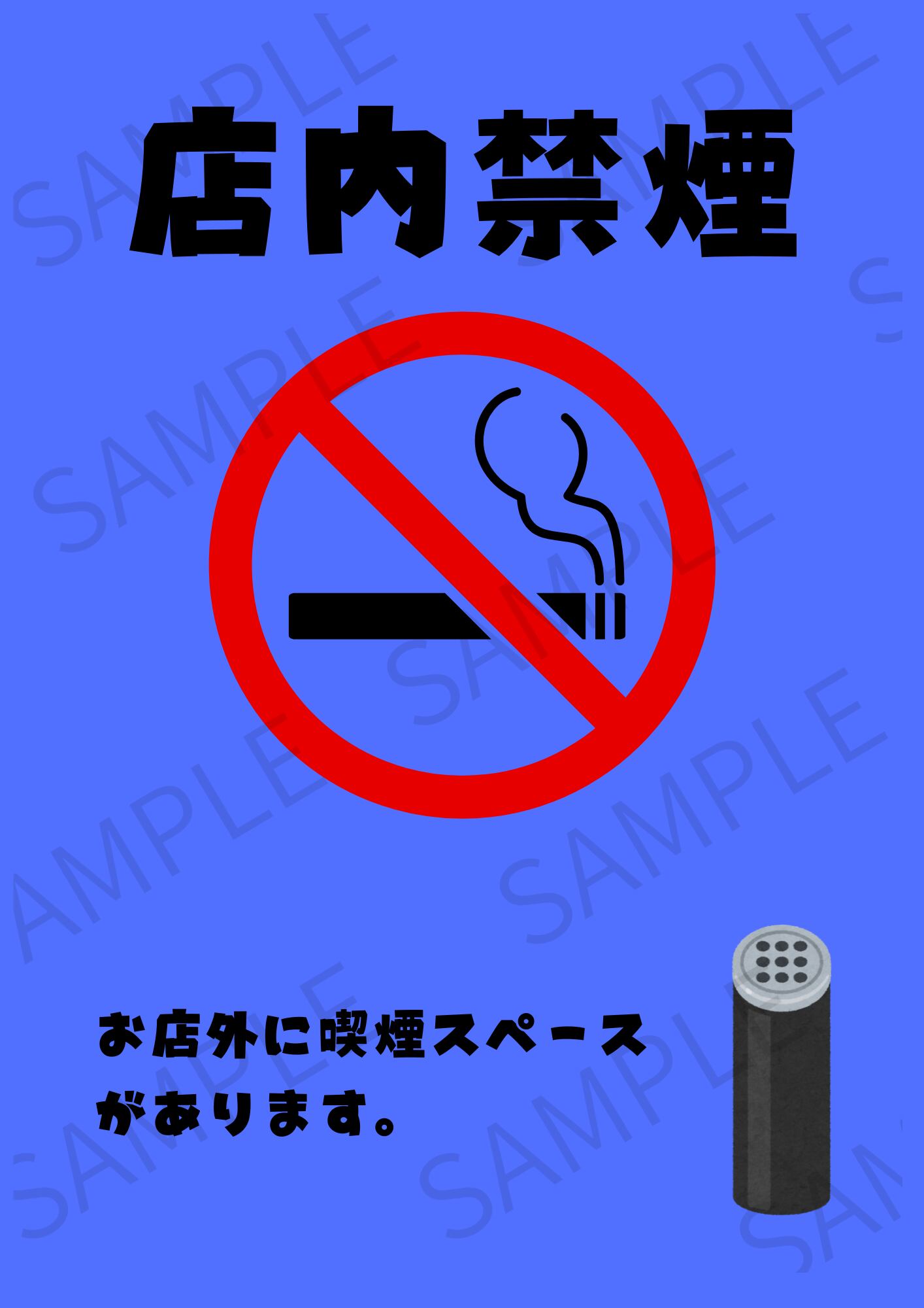 【A4ポスター用】店内禁煙ポスター 画像 デザイン4(ブルー)