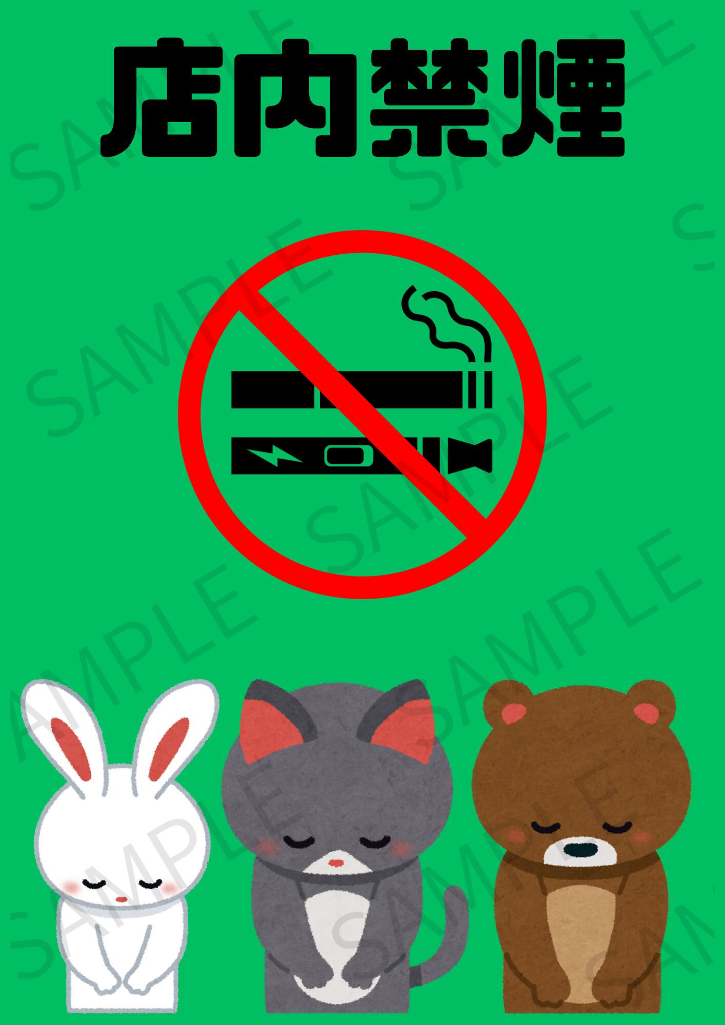 【A4ポスター用】店内禁煙ポスター 画像 デザイン5(グリーン)