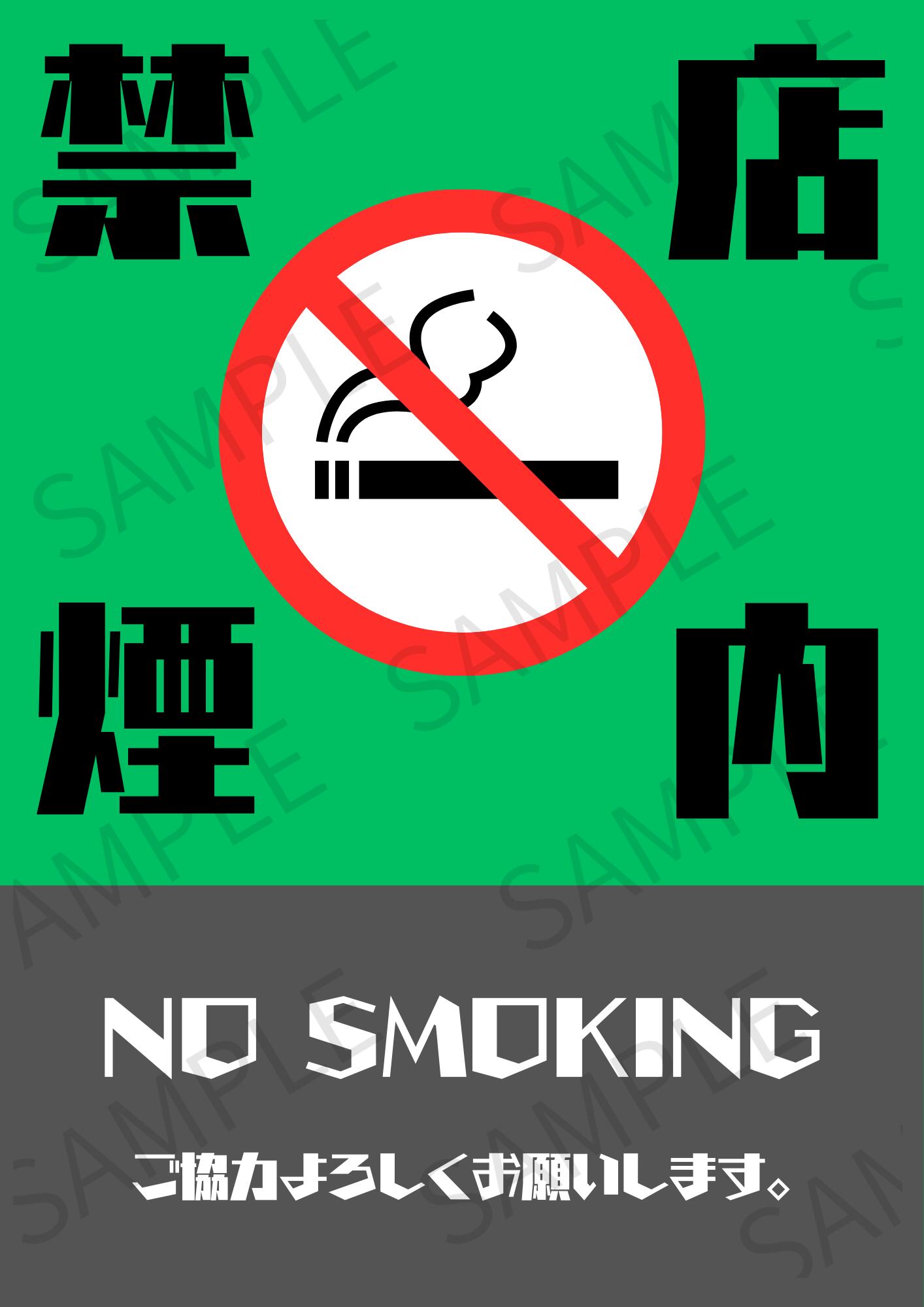 【A4ポスター用】店内禁煙ポスター 画像 デザイン6(グリーン)