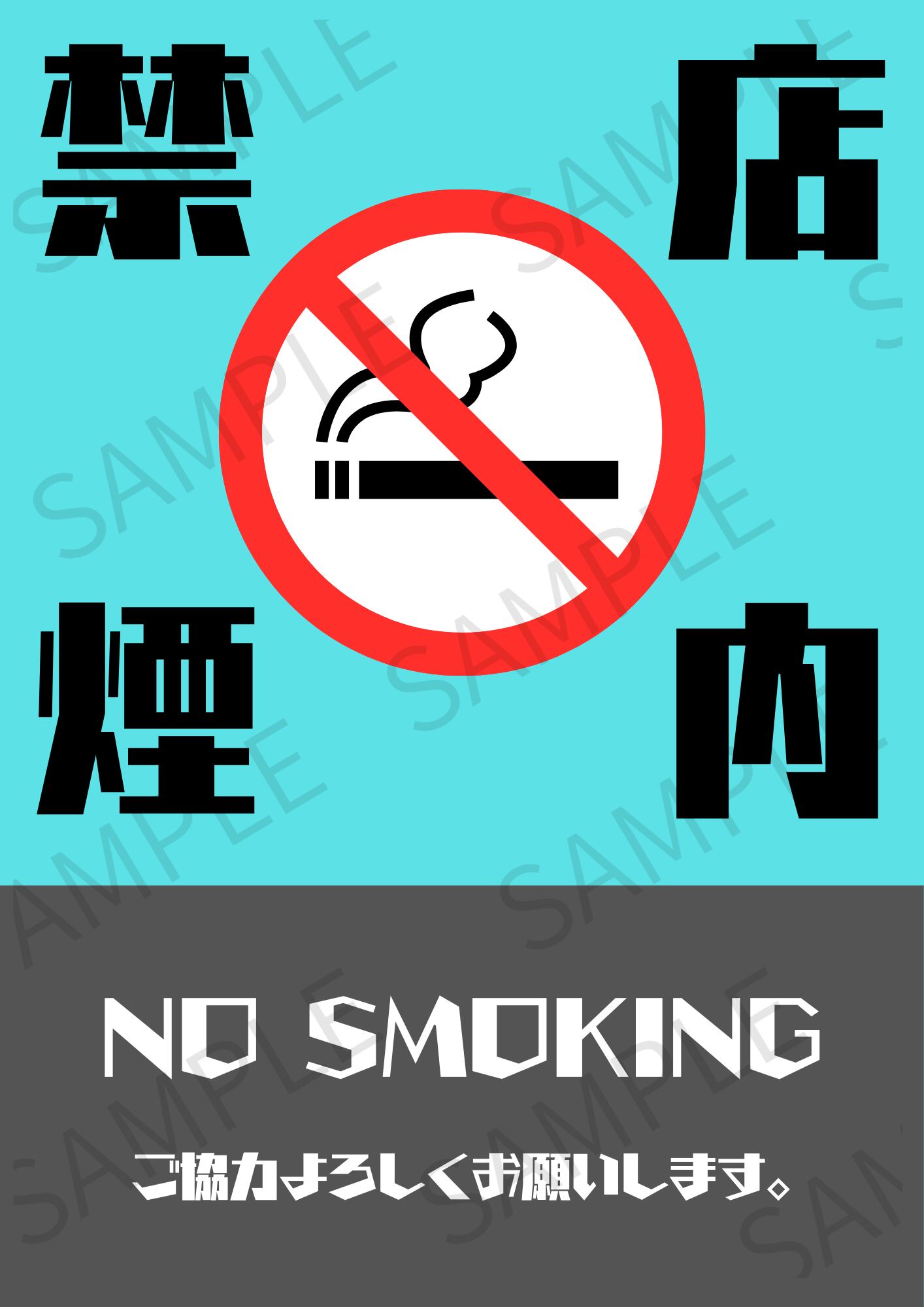 店内禁煙をお知らせするためのシンプルで分かりやすいデザインのポスターです。