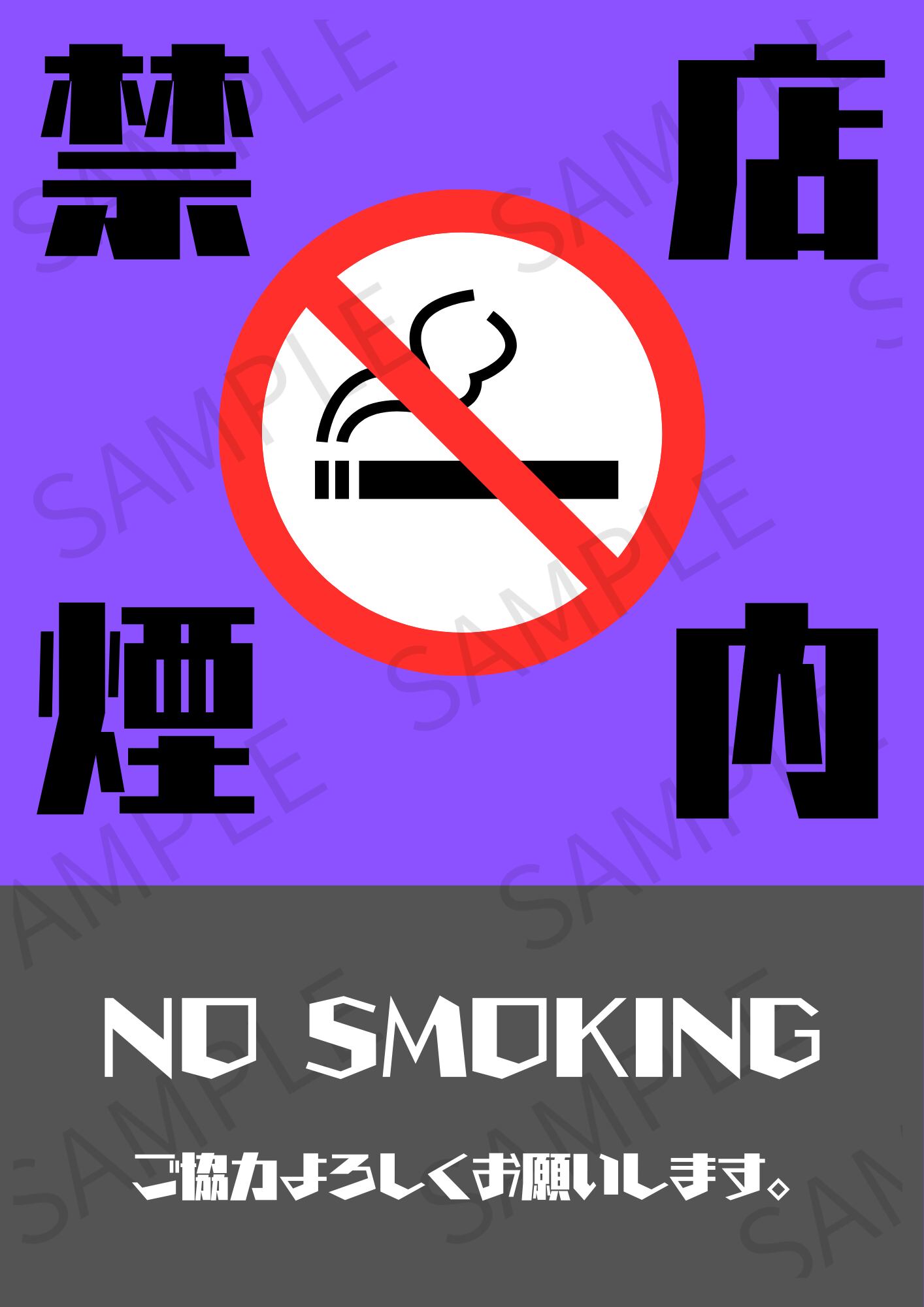 【A4ポスター用】店内禁煙ポスター 画像 デザイン6(パープル)