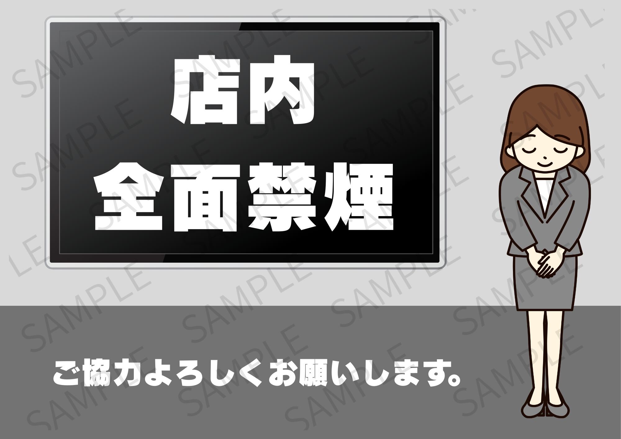 【A4ポスター用】店内禁煙ポスター 画像 デザイン7(グレー)