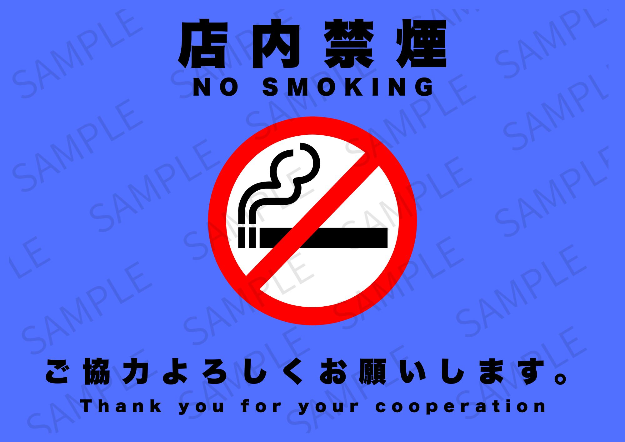 【A4ポスター用】店内禁煙ポスター 画像 デザイン9(ブルー)