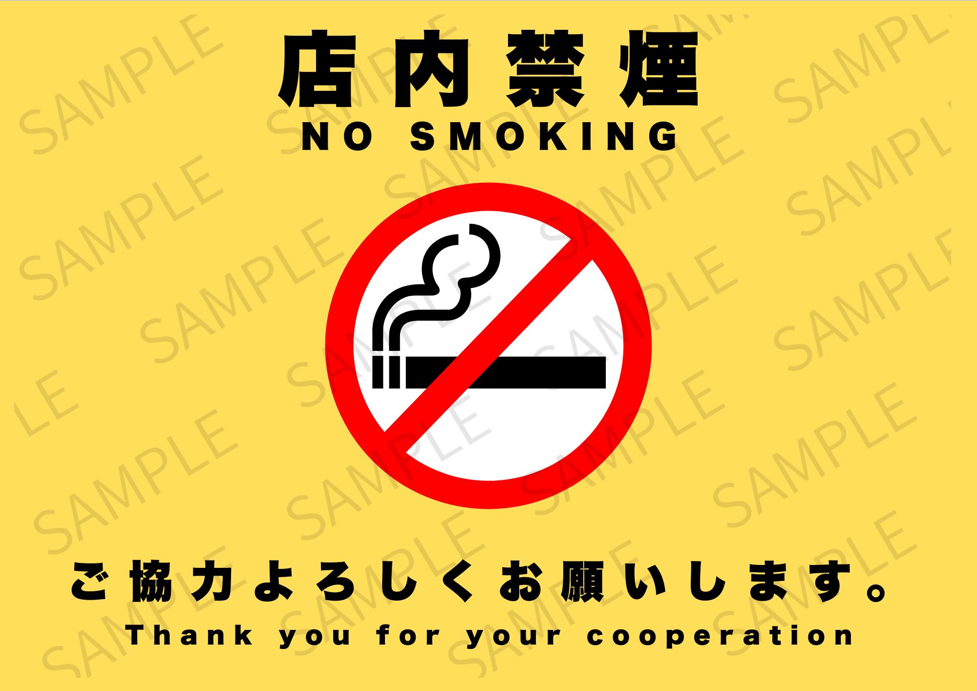 【A4ポスター用】店内禁煙ポスター 画像 デザイン9(イエロー)
